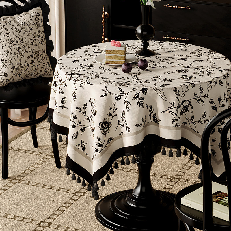 美式圆桌布高级感圆形餐桌布小圆台装饰盖布圆茶几布防尘台布防油