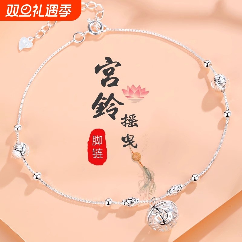银宫铃脚环铃铛脚链999银纯银女2025新款网红古风送女友生日礼物