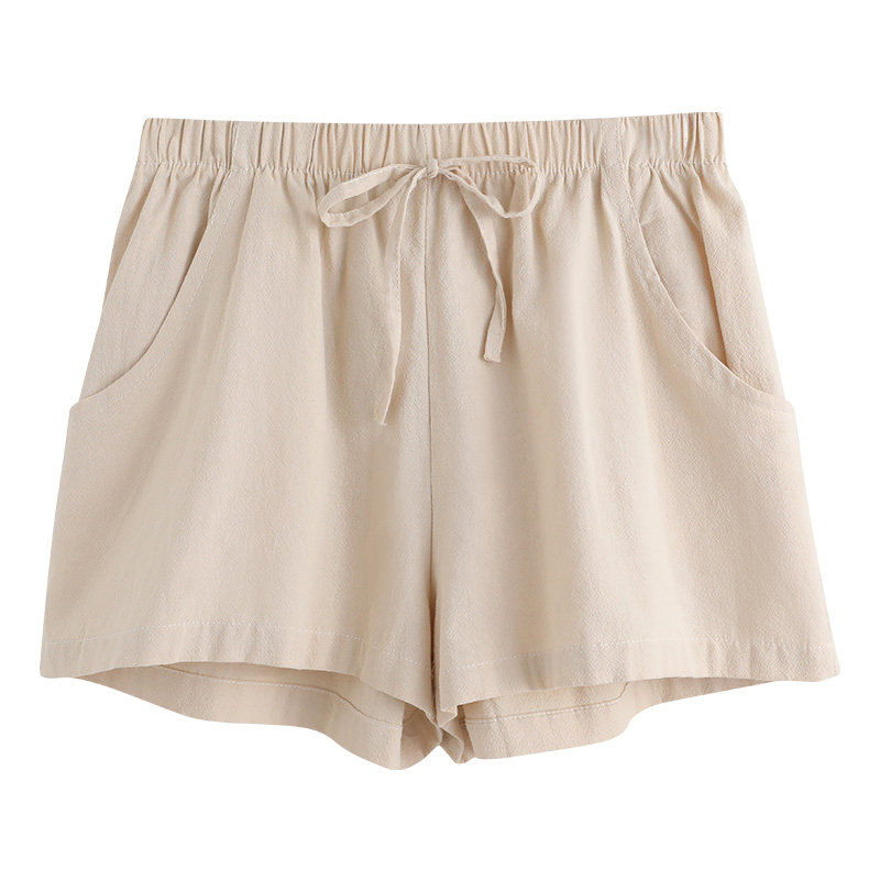 棉麻短裤女外穿2025夏季新款a字松紧腰阔腿大码宽松运动休闲裤