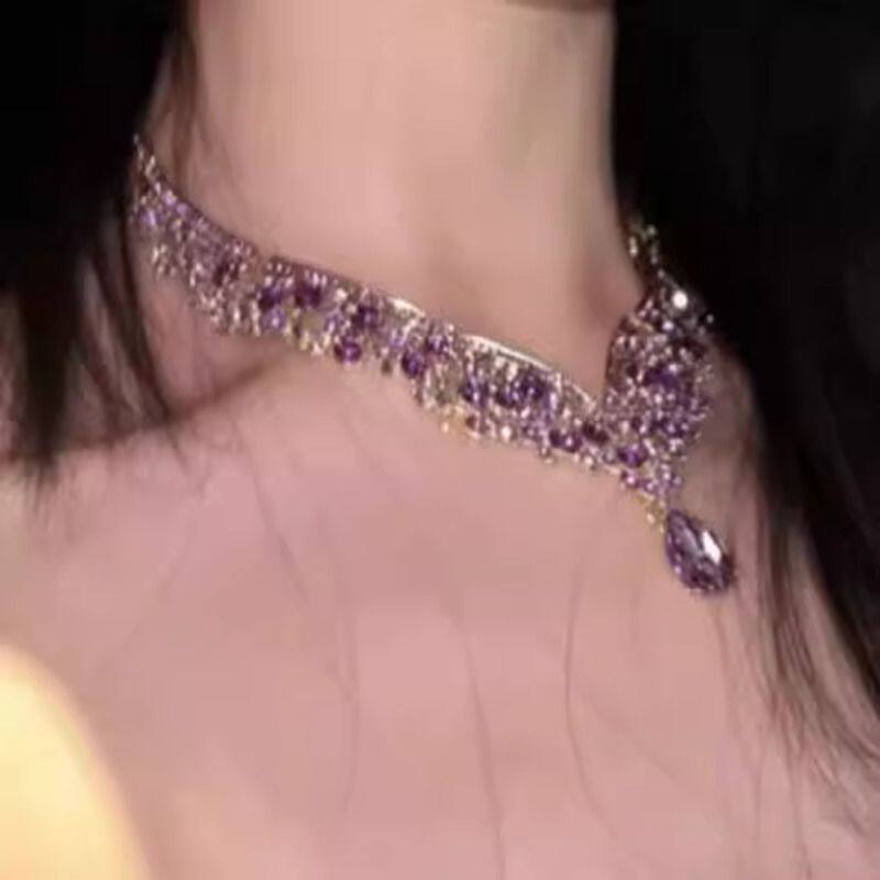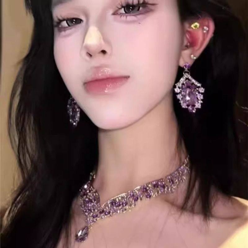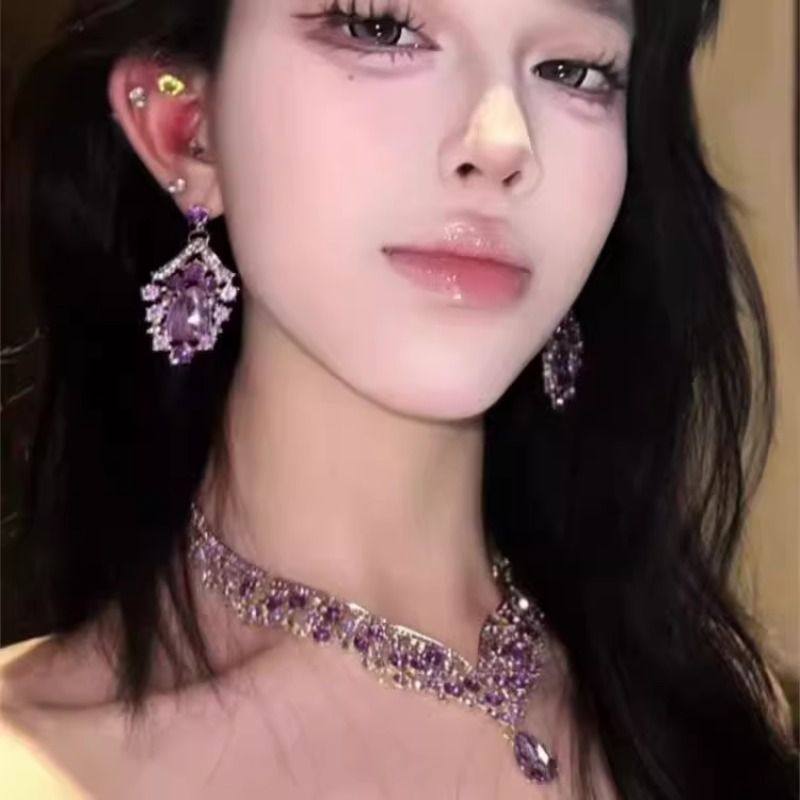 zoozmomo紫色闪钻项链女2025新款轻奢高级感锁骨链套装配饰潮