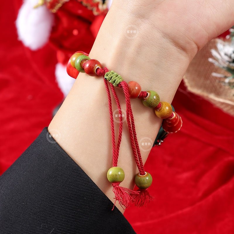 马年红适用华为手环10NFC表带红色拼色搭配huawei band9/8/7/6代圣诞节学生款腕带荣耀9/8红苹果串珠男女生67