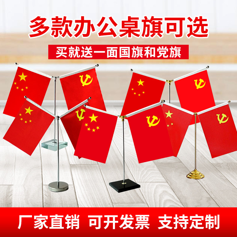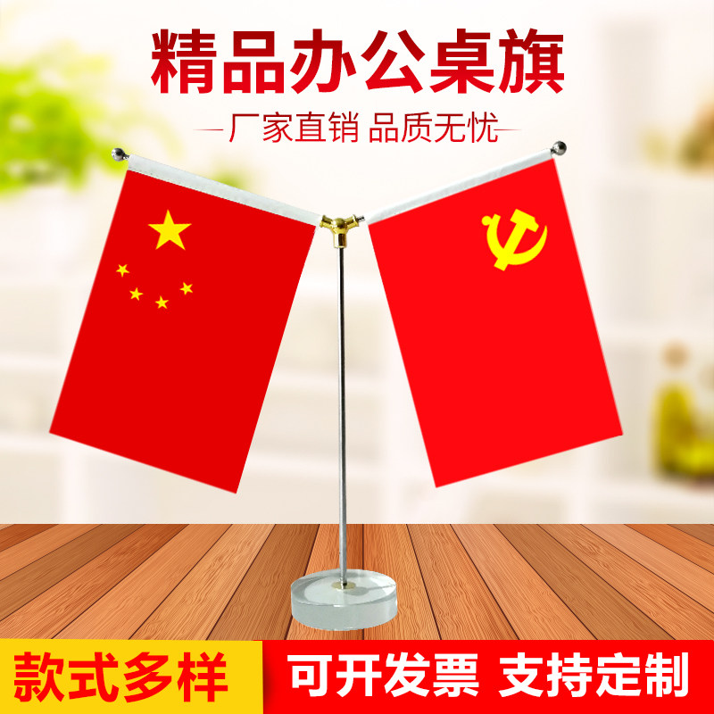 小红旗办公室桌旗金色Y型旗会议室桌面旗杆旗架办公桌谈判旗司旗