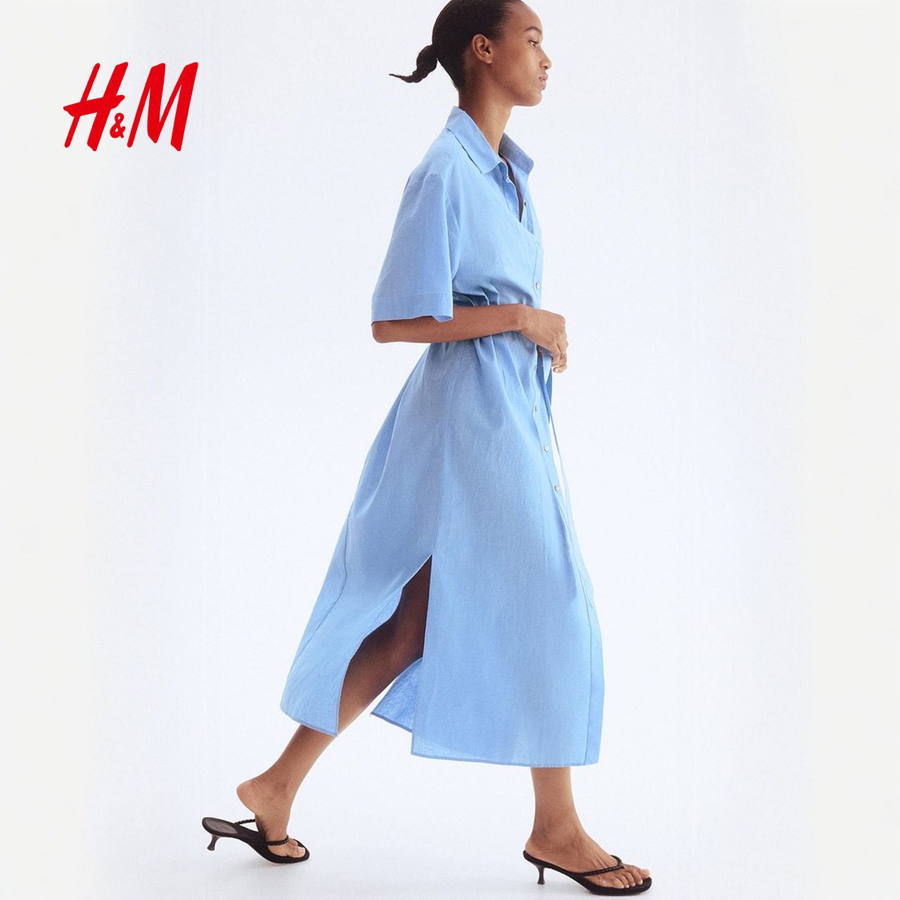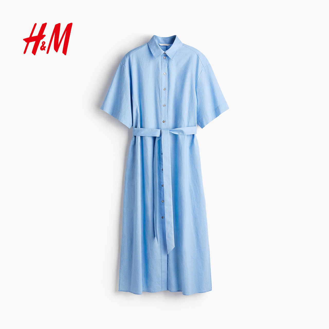 HM女装连衣裙2025年冬季新款亚麻混纺衬衫式连衣裙1278042