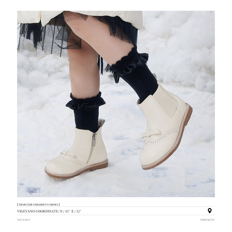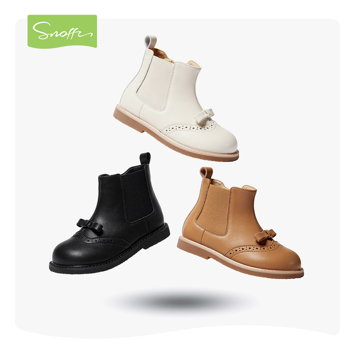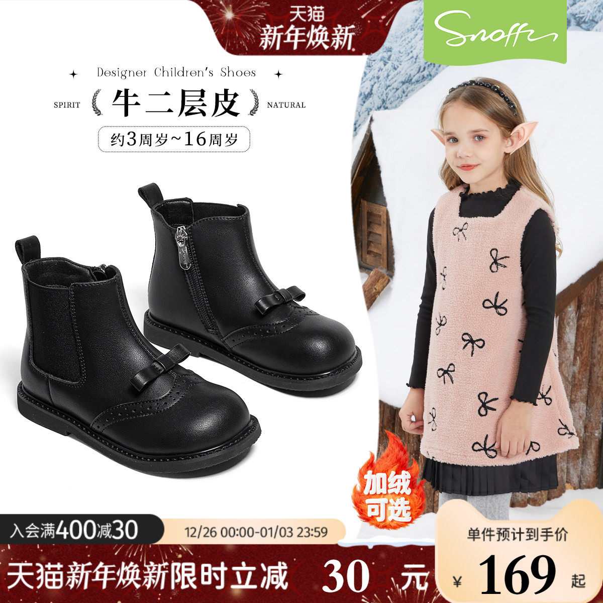 斯纳菲女童短靴2025秋冬新款加绒儿童皮靴真皮洋气公主棉靴小女孩