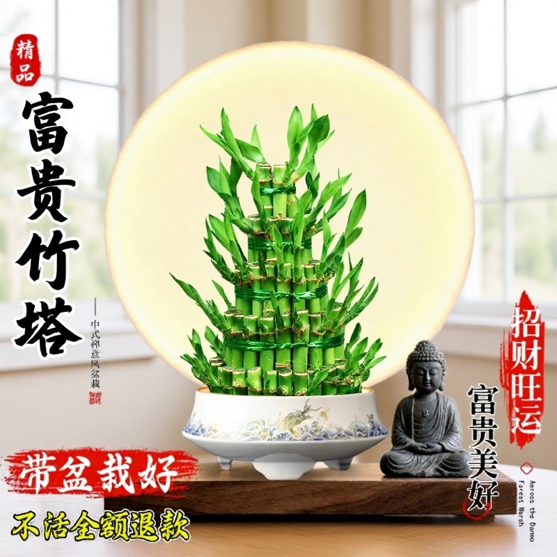 富贵竹植物客厅招财竹塔绿植盆栽粗杆带根易活桌面水培植物办公室