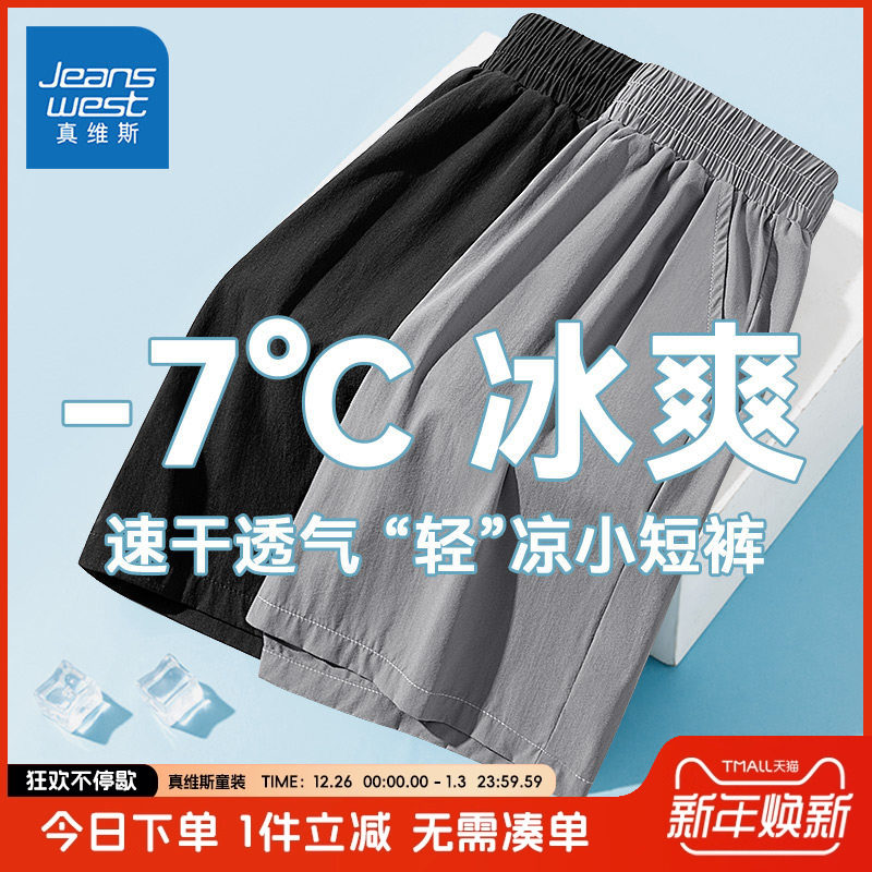 真维斯童装男童短裤夏季男大童纯色运动五分裤儿童冰丝速干裤子薄