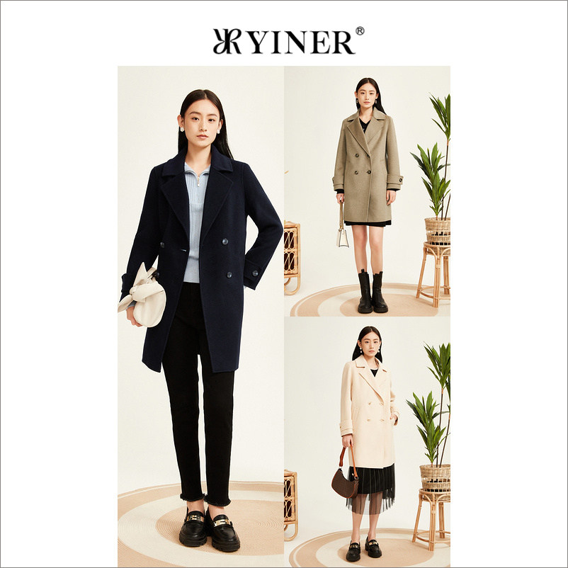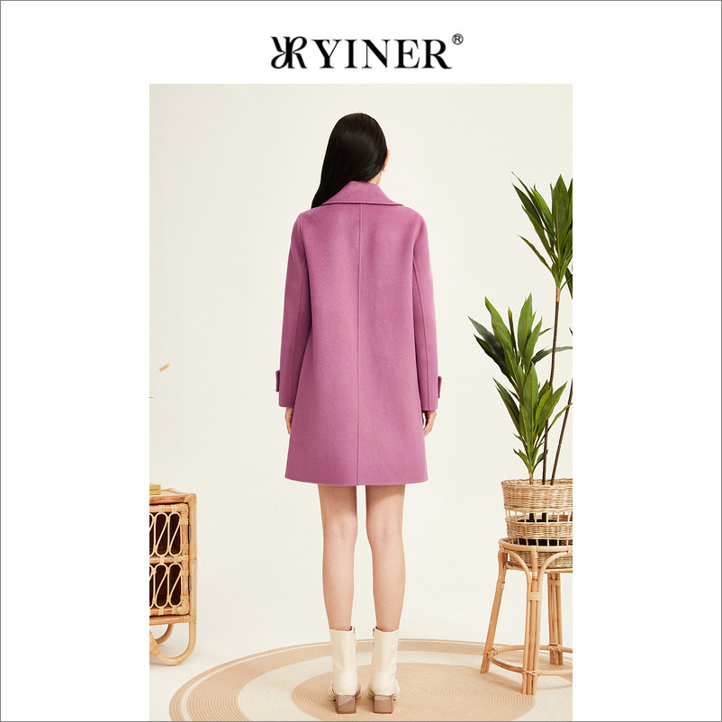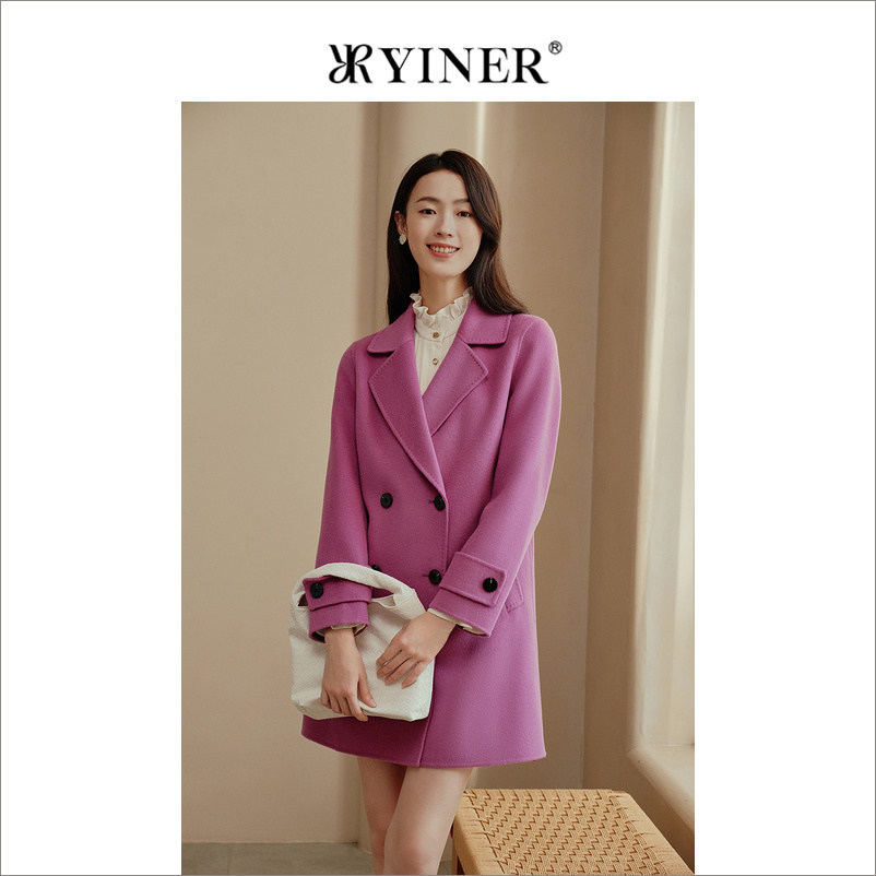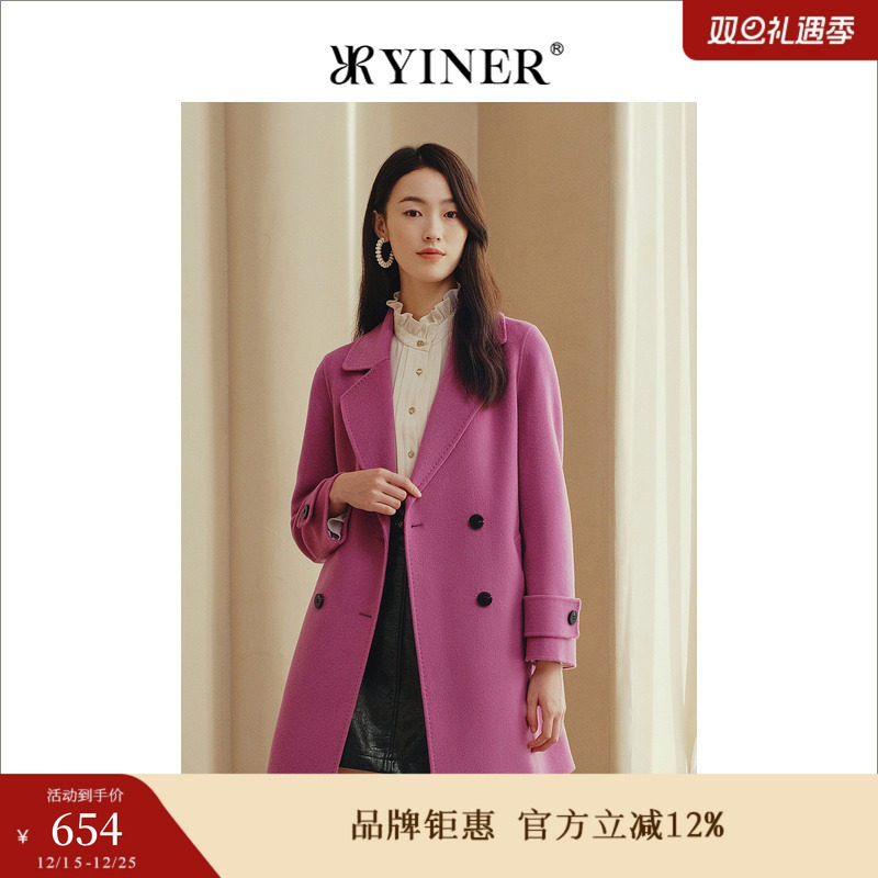 【100绵羊毛】YINER音儿专选女装冬季中长款西装领双面呢大衣外套