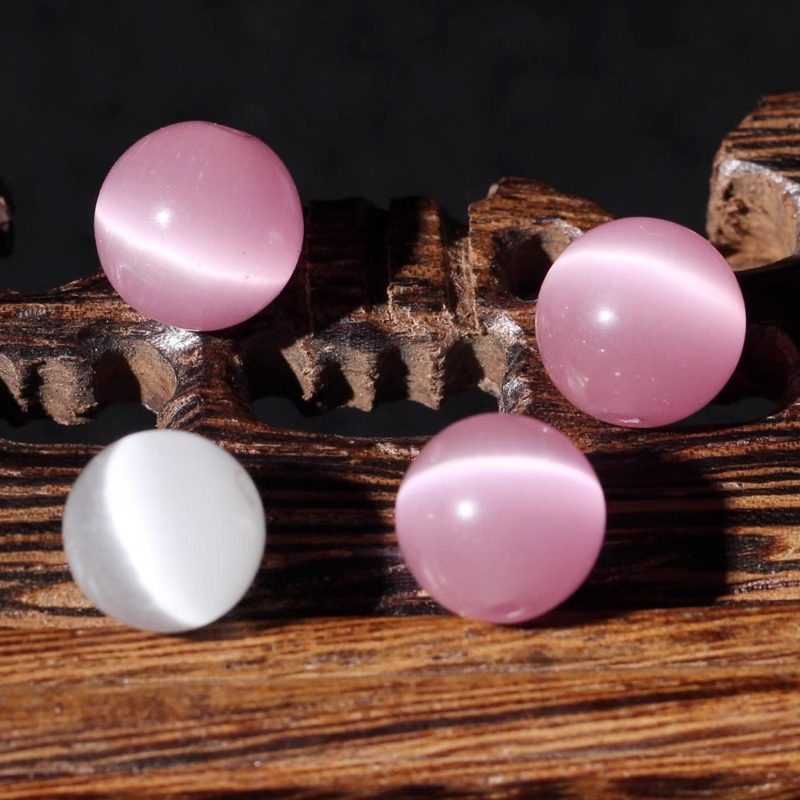 粉猫眼石白散珠子半成品DIY饰品配件手工编织串珠圆珠整包佛珠