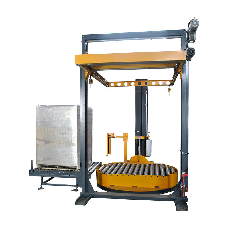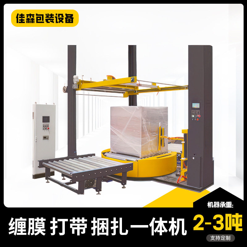 覆顶膜缠绕机厂家全自动在线托盘缠绕包装机纸箱打带缠膜一体机