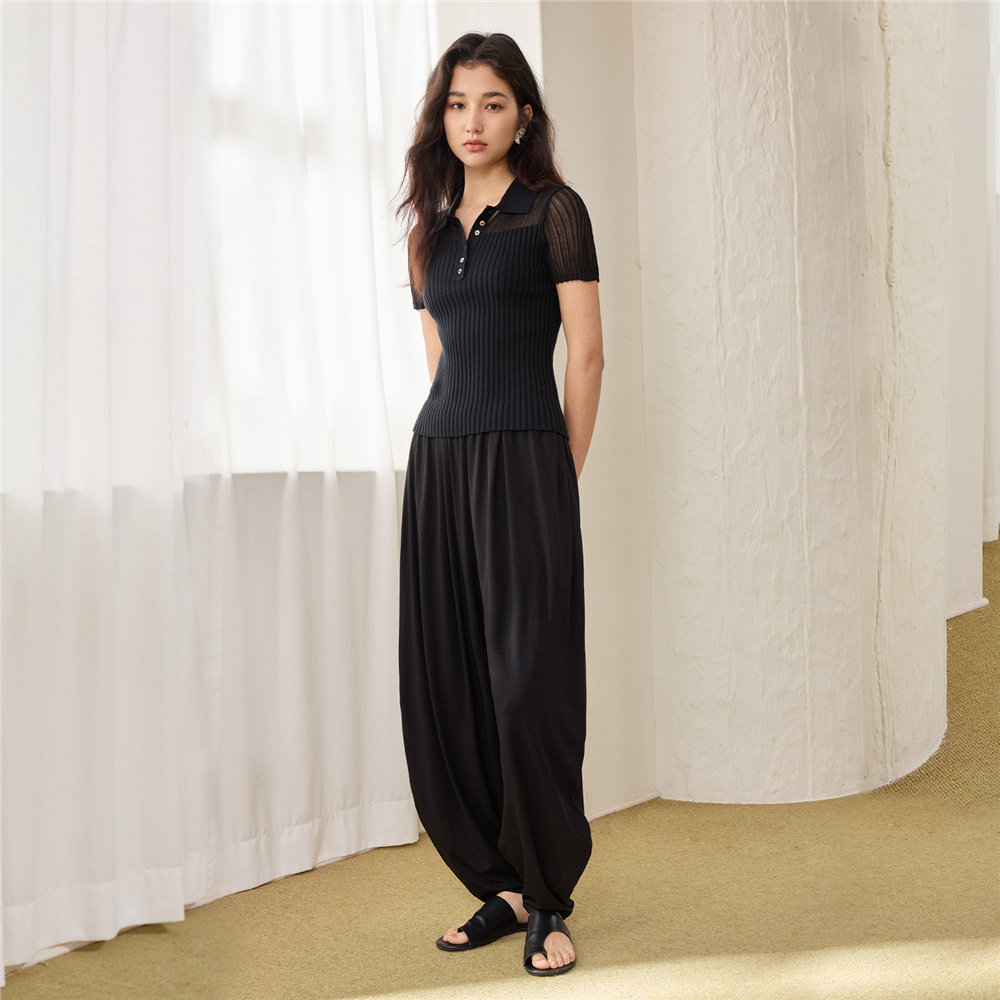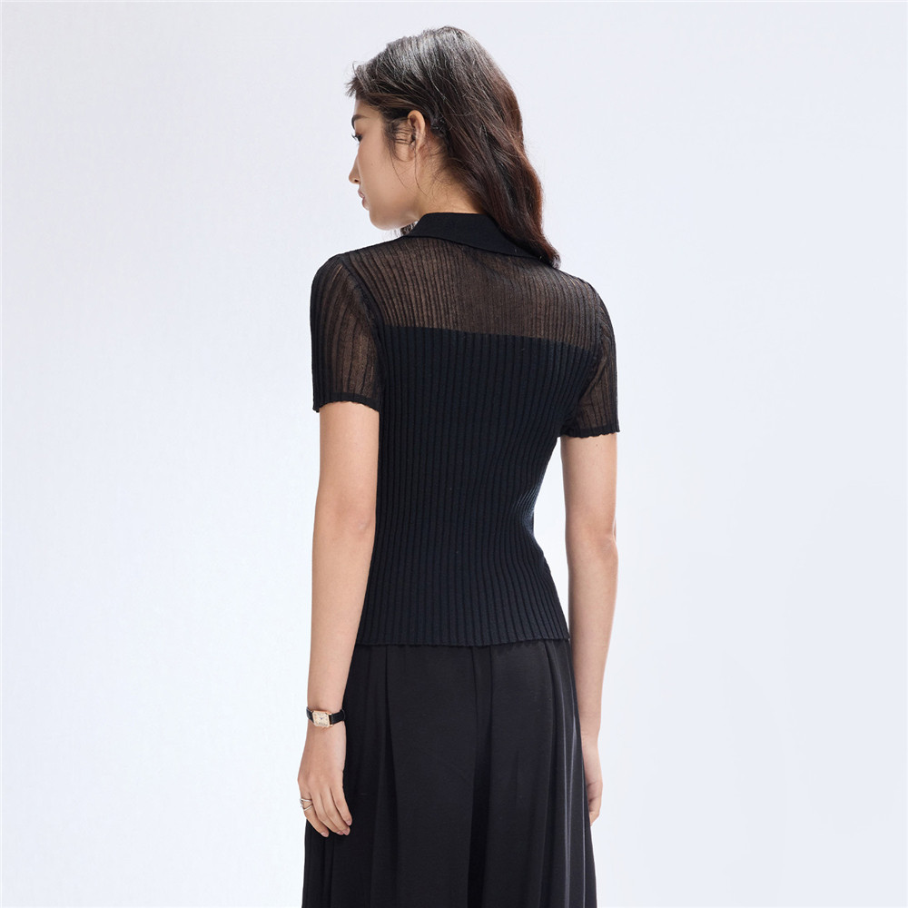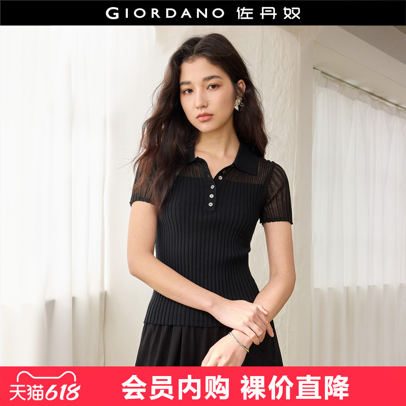 设计师款佐丹奴短袖针织衫女时尚拼接纱修身POLO针织衫女18355203