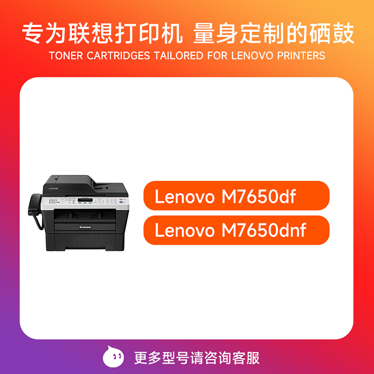 墨道 适用联想7650粉盒碳粉易加粉Lenove M7650df/dnf硒鼓激光打印机一体机LT2441 TN2215墨盒墨粉DR2250鼓架