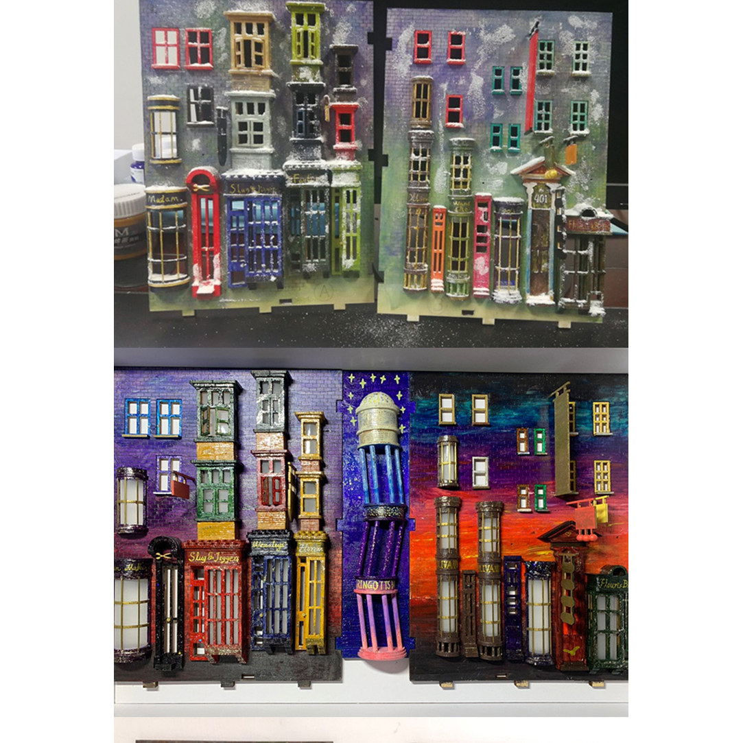 【特价】哈利波特周边对角巷书立书挡DIY灯光小屋立体拼装送礼物