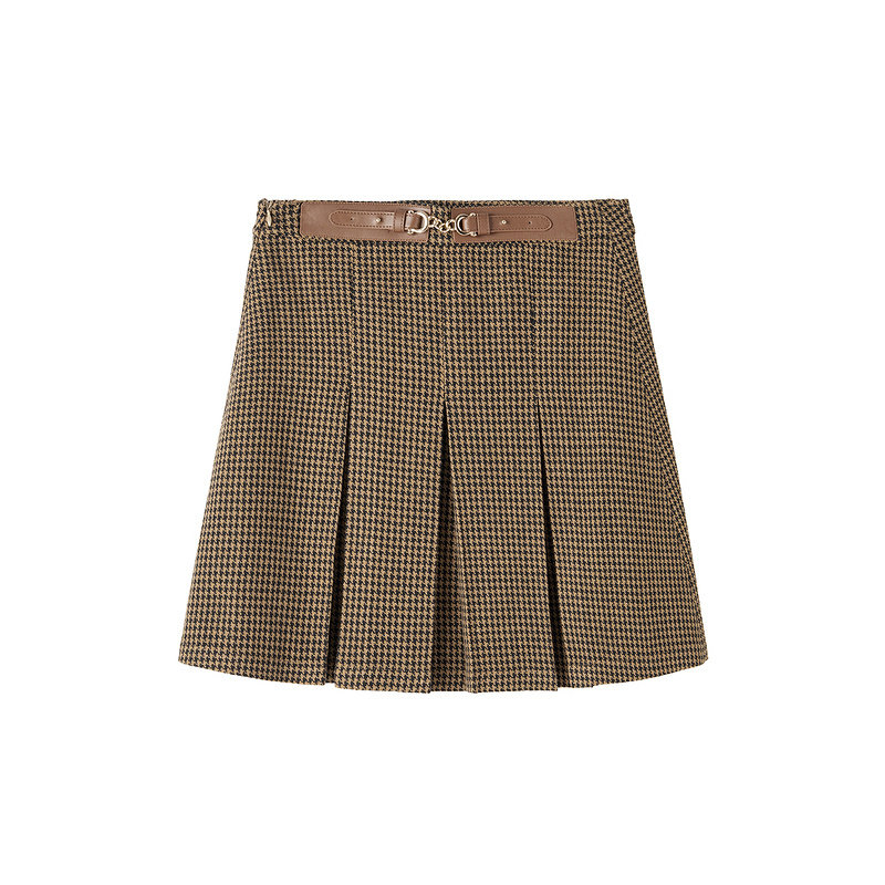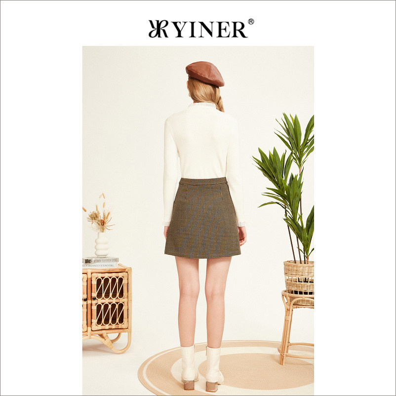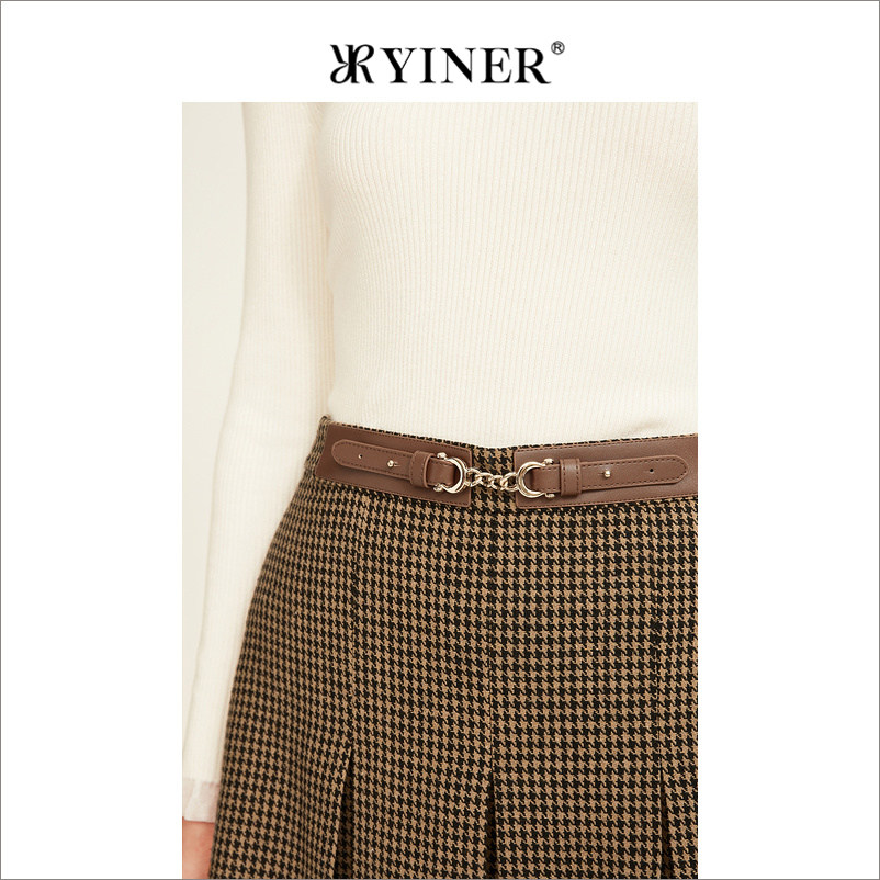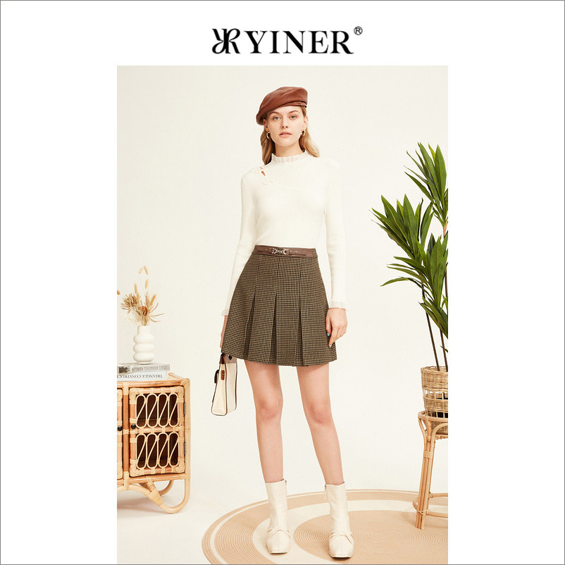 YINER音儿专选女装冬季百褶裙学院风千鸟格半裙