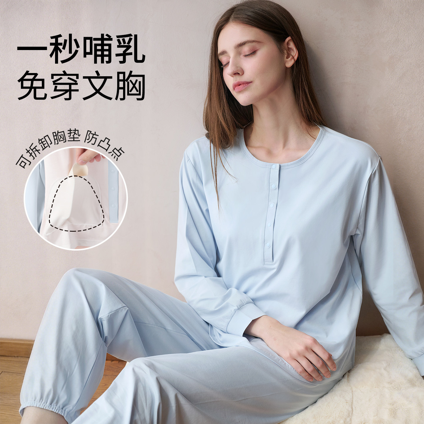 婧麒云慕丝月子服产后秋冬季纯哺乳家居服棉怀孕产妇孕妇睡衣套装