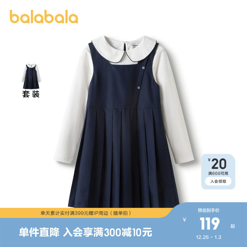 巴拉巴拉童装儿童连衣裙女童春秋装学院风洋气时尚背带裙两件套甜