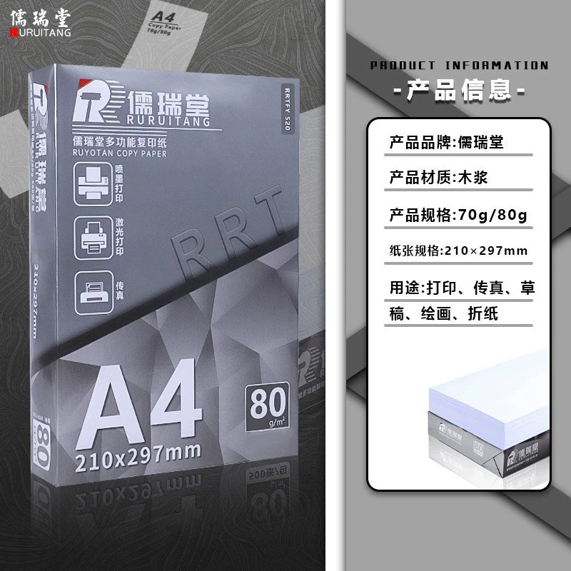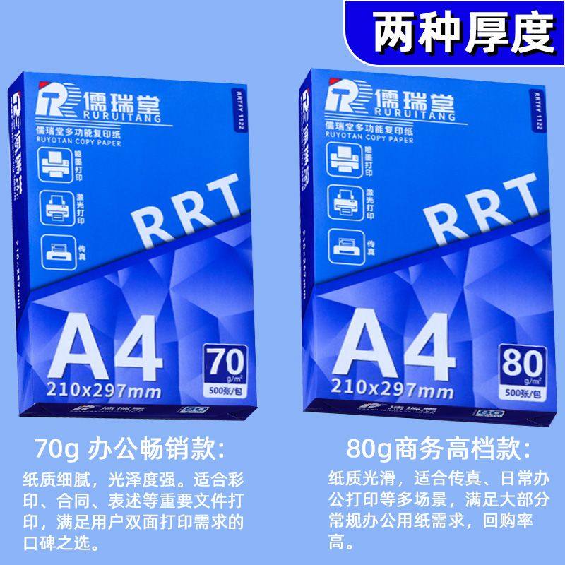 A4纸a4打印纸复印纸70g白纸80g单包500张加厚双面打印白纸打印机纸草稿纸5包装整箱木浆办公画画用品包邮