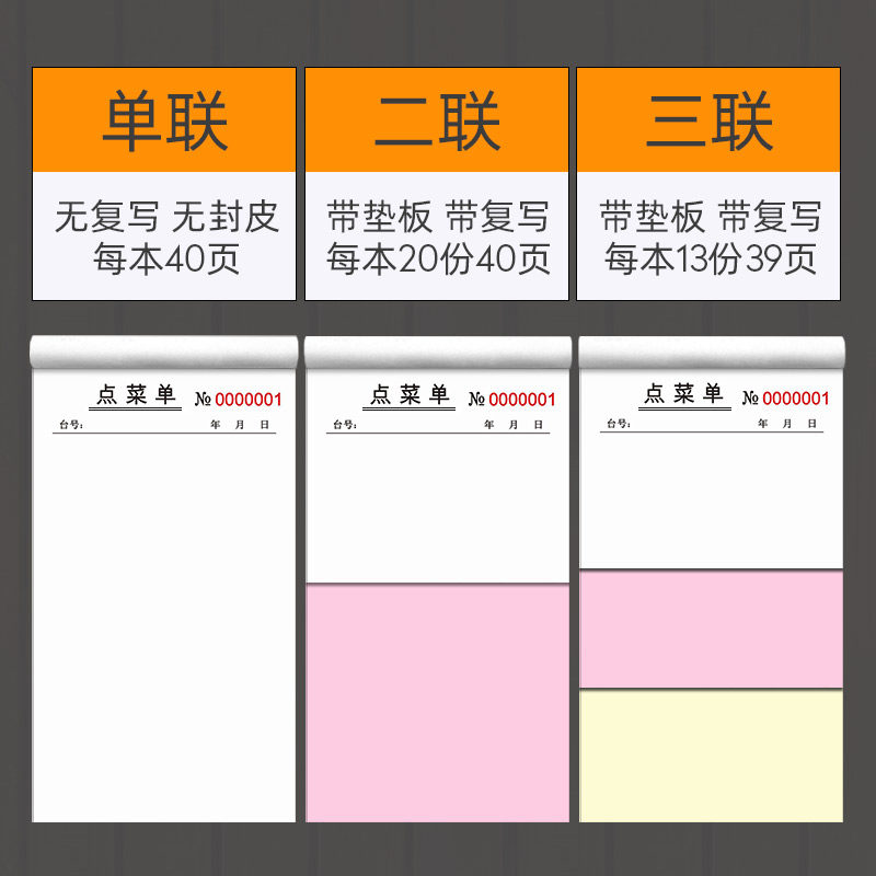 单页点菜单一联单联点菜本空白二联三联饭店餐厅两联酒水单烧烤餐饮酒店通用手写菜单本公司无碳复写