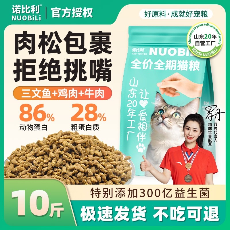 诺比利猫粮10斤实惠装生骨肉成猫增肥发腮通用山东20年工厂全价