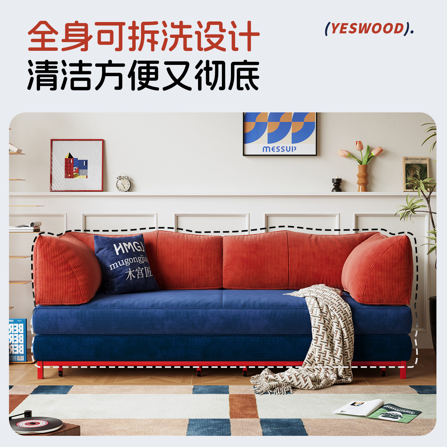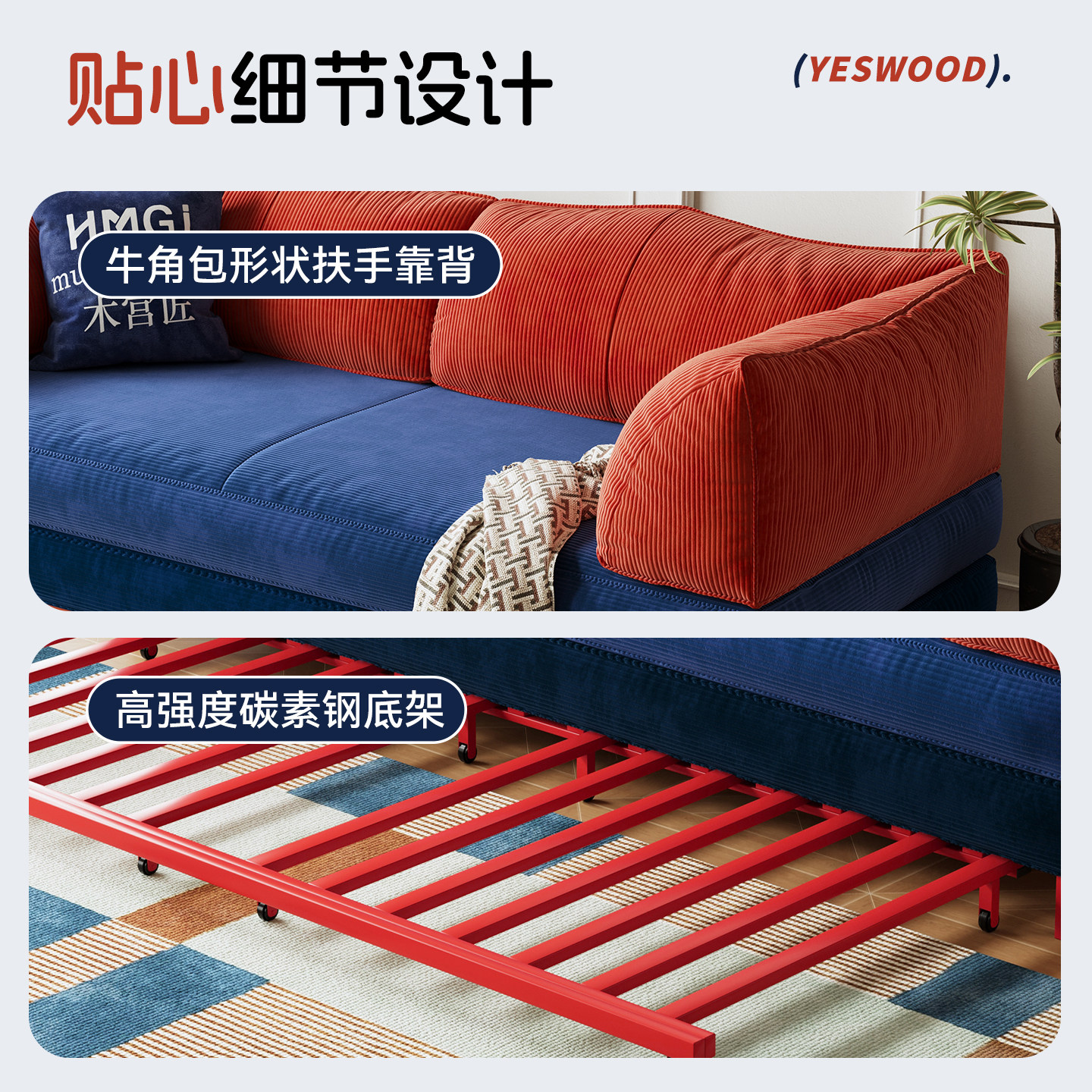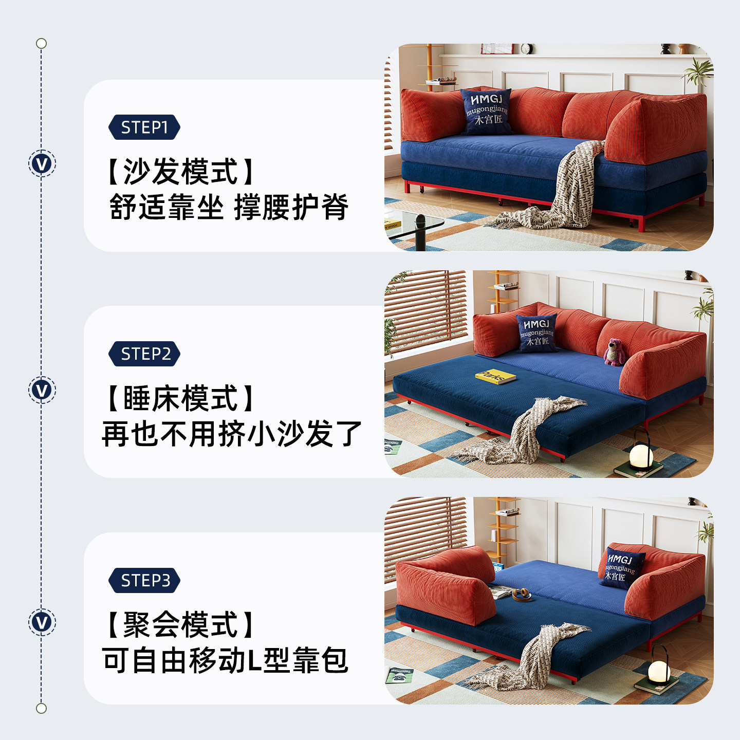 木宫匠牛角包沙发床拼色可移动折叠两用可变床小户型榻榻米可拆洗