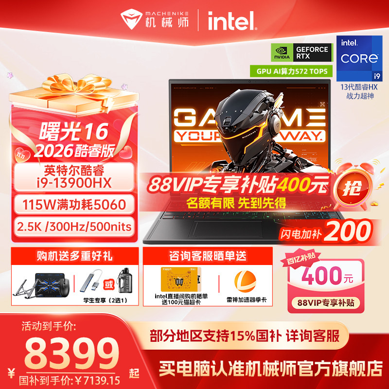 【国家补贴15%】机械师曙光16 英特尔酷睿i7/i9HX RTX5060 16英寸S电竞游戏本笔记本电脑以旧换新补贴