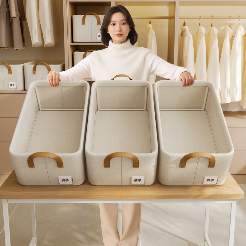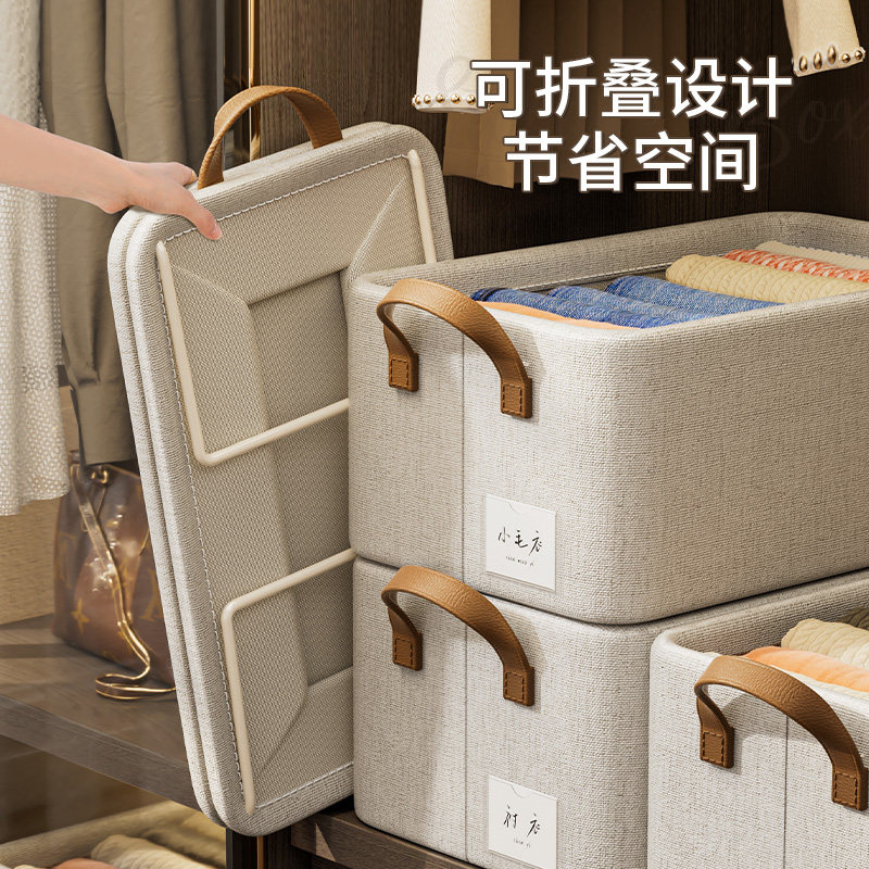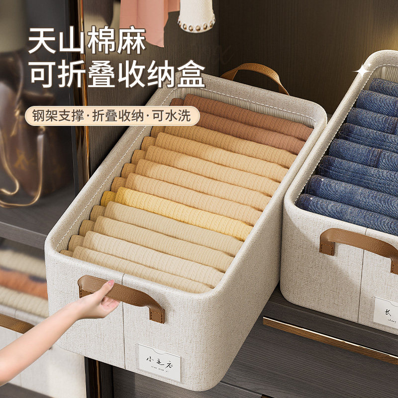 天山棉麻收纳筐衣柜收纳整理分层神器PP板可水洗衣服储物盒收纳箱