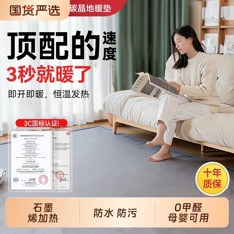星地暖垫石墨烯家用碳晶发热加热地垫瑜伽电热垫客厅电热地毯取暖