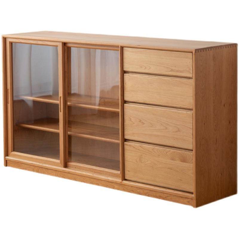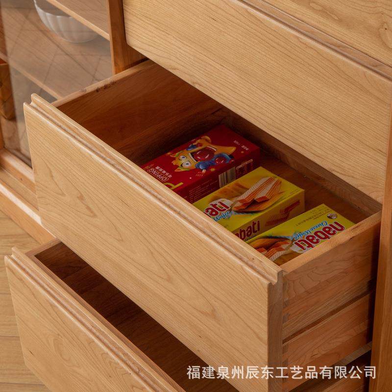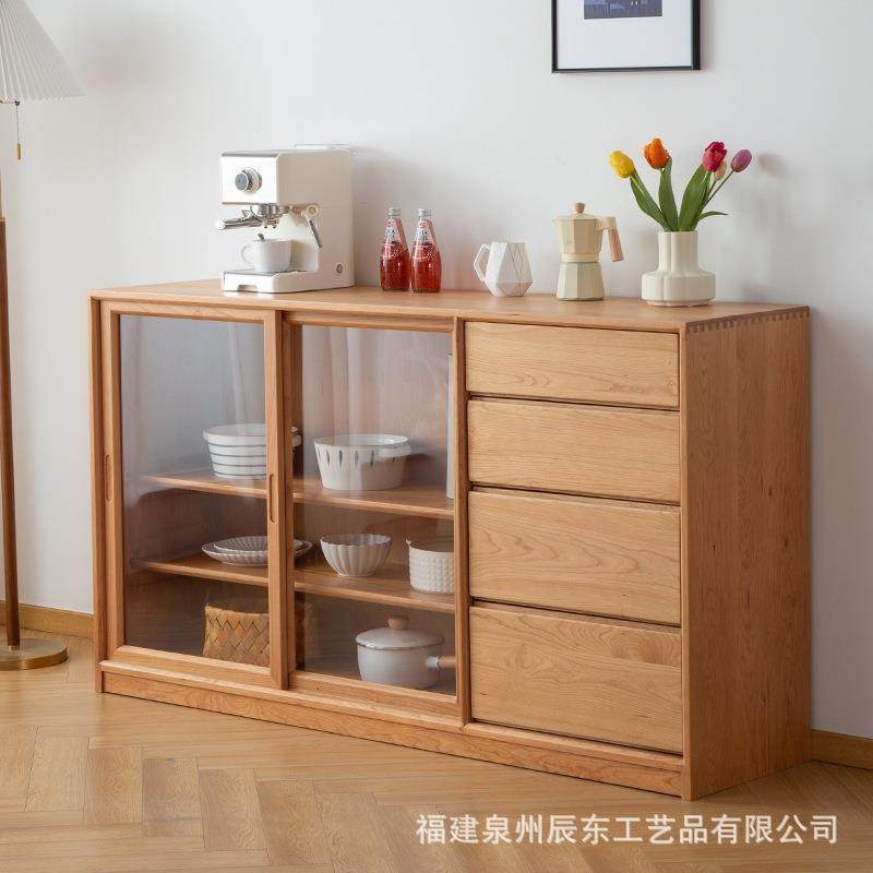 北欧实木餐边柜家用客厅多功能碗橱收纳柜民宿简约落地玻璃茶水柜