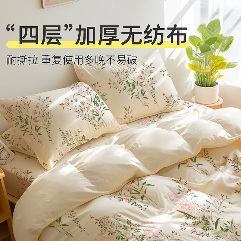一次性床笠四件套床上床品床单被罩枕套加厚隔脏非纯棉旅行用品