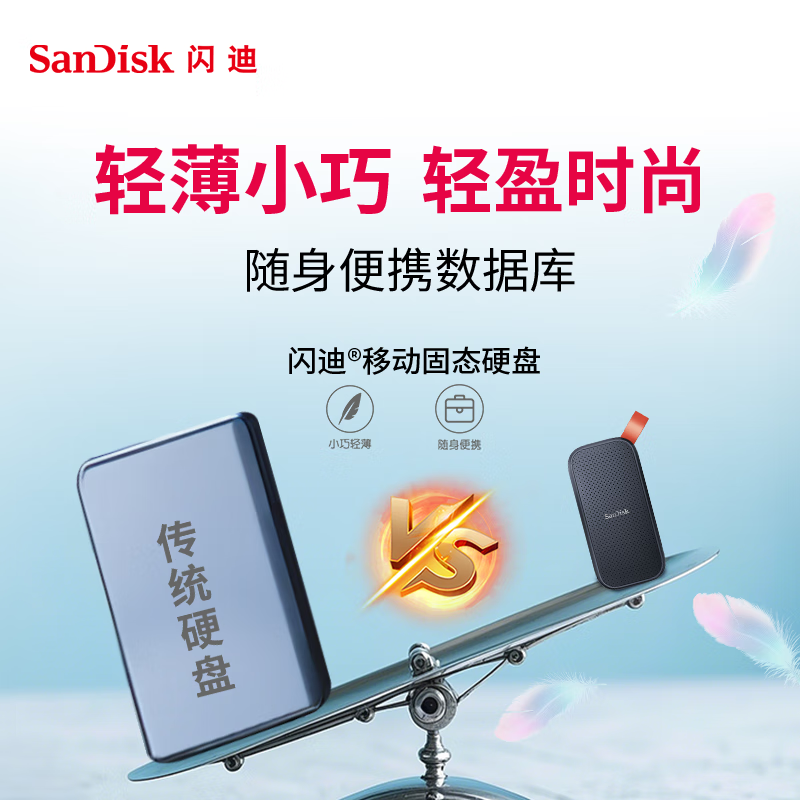 闪迪E61固态移动硬盘2t三防便携ssd外接1tb大容量手机电脑两用