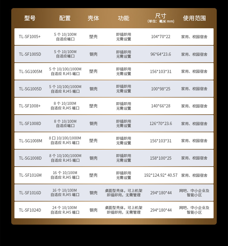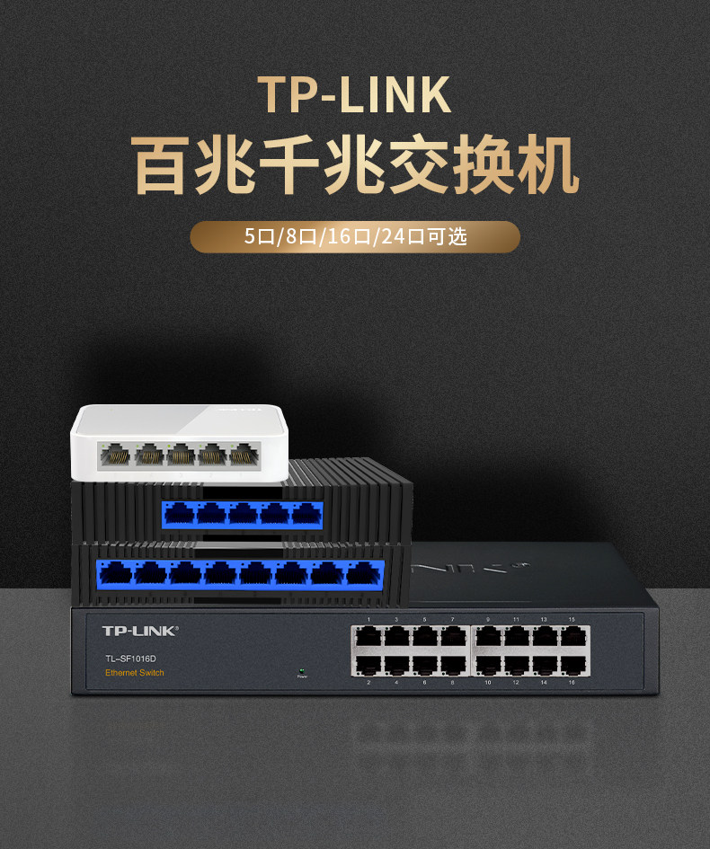 TP-LINK TL-SF1005+百兆5口8口网络交换机企业办公家用校园宿舍4口监控分配分流网线接口网口增加集线分线器