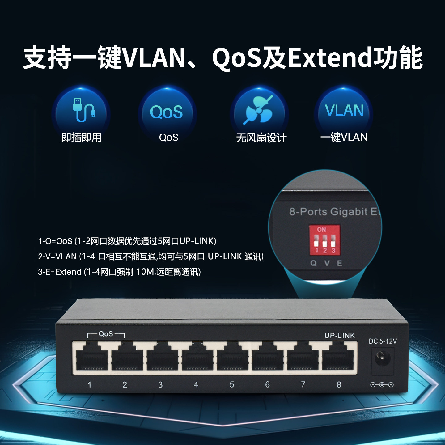 创立信 5口8口百/千兆交换机QoS一键开启功能网络交换器家用监控网线分流器