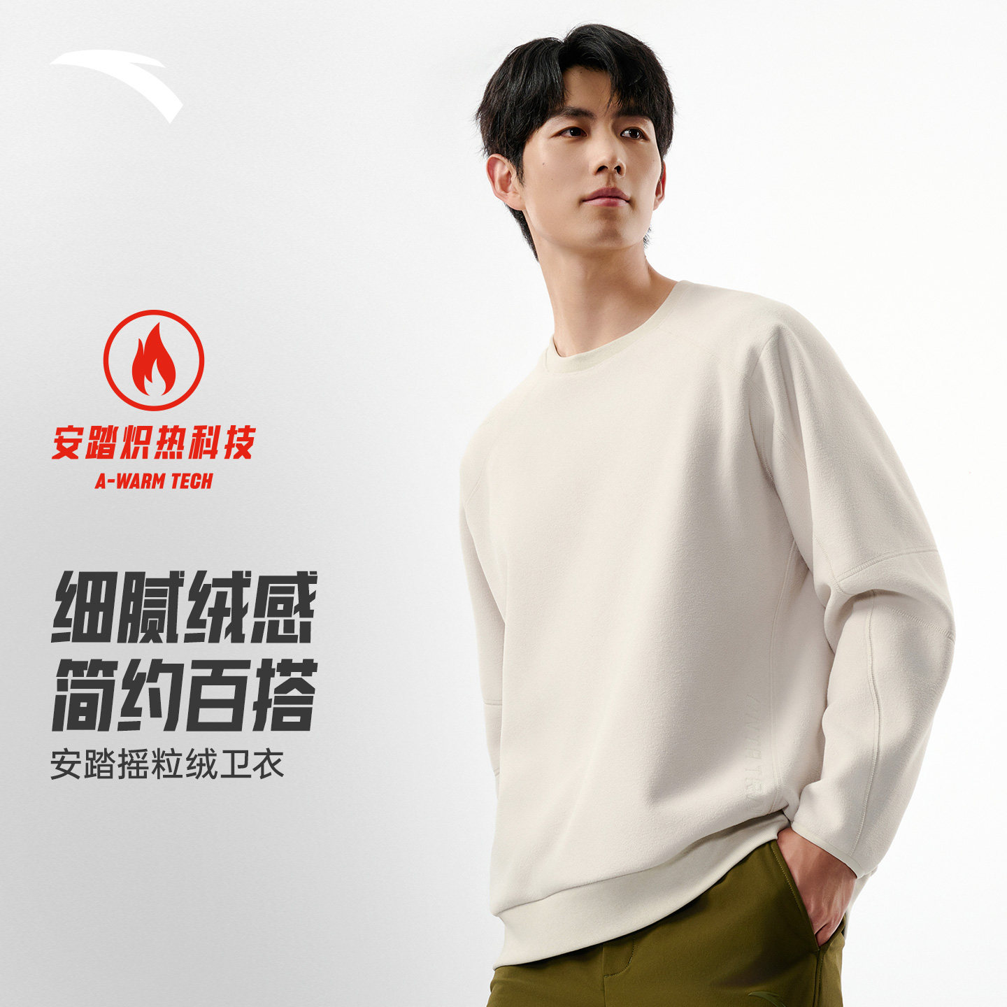 安踏摇粒绒圆领套头卫衣男士冬季新款保暖抓绒衣冲锋衣内胆打底衫