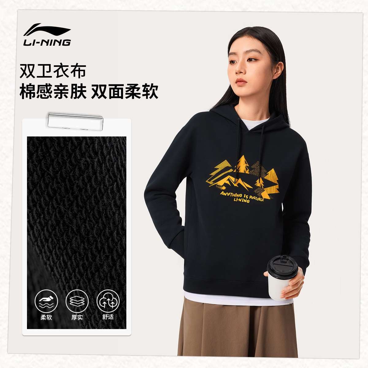 李宁卫衣男士冬季官方新款情侣休闲帽衫美式薄款上衣长袖女运动服