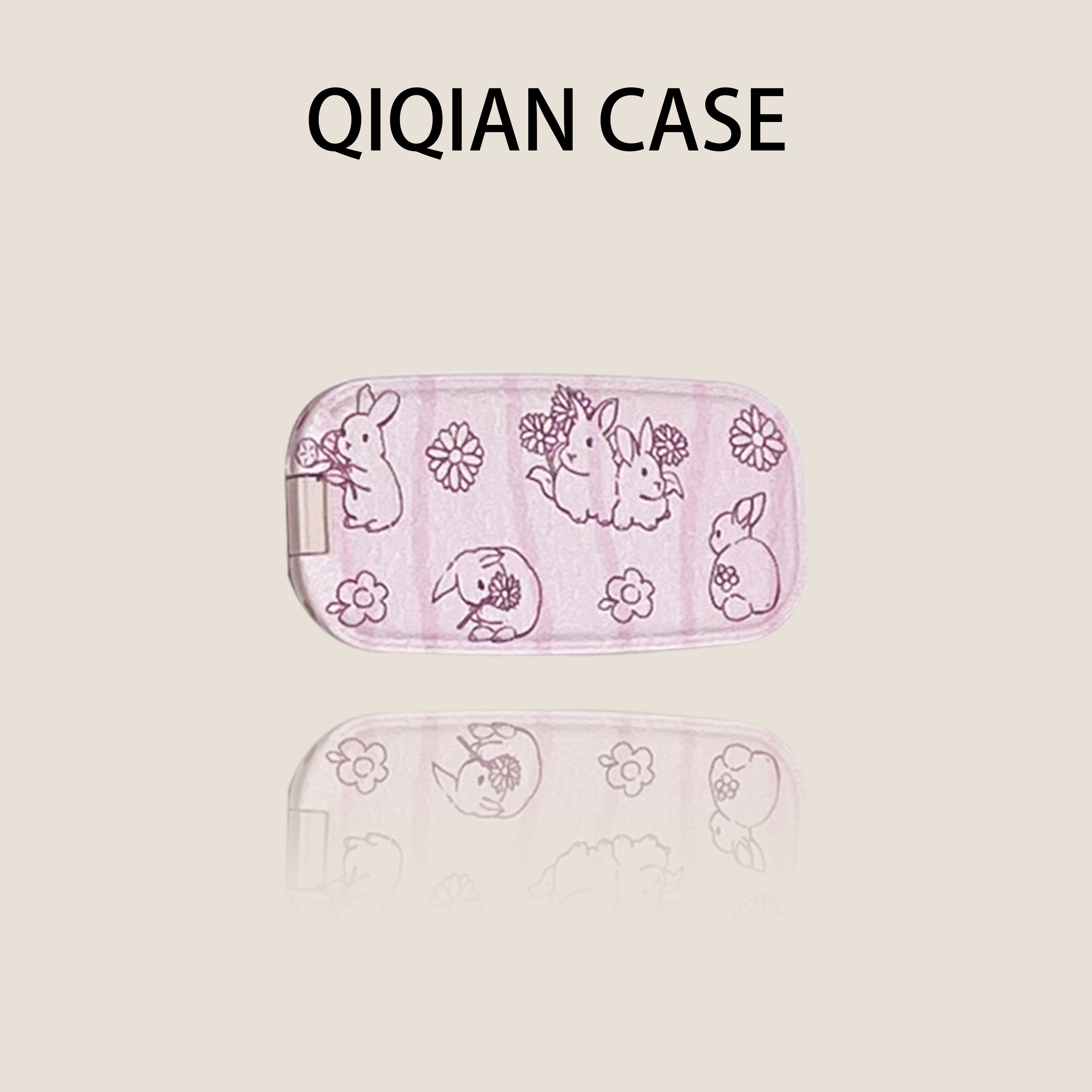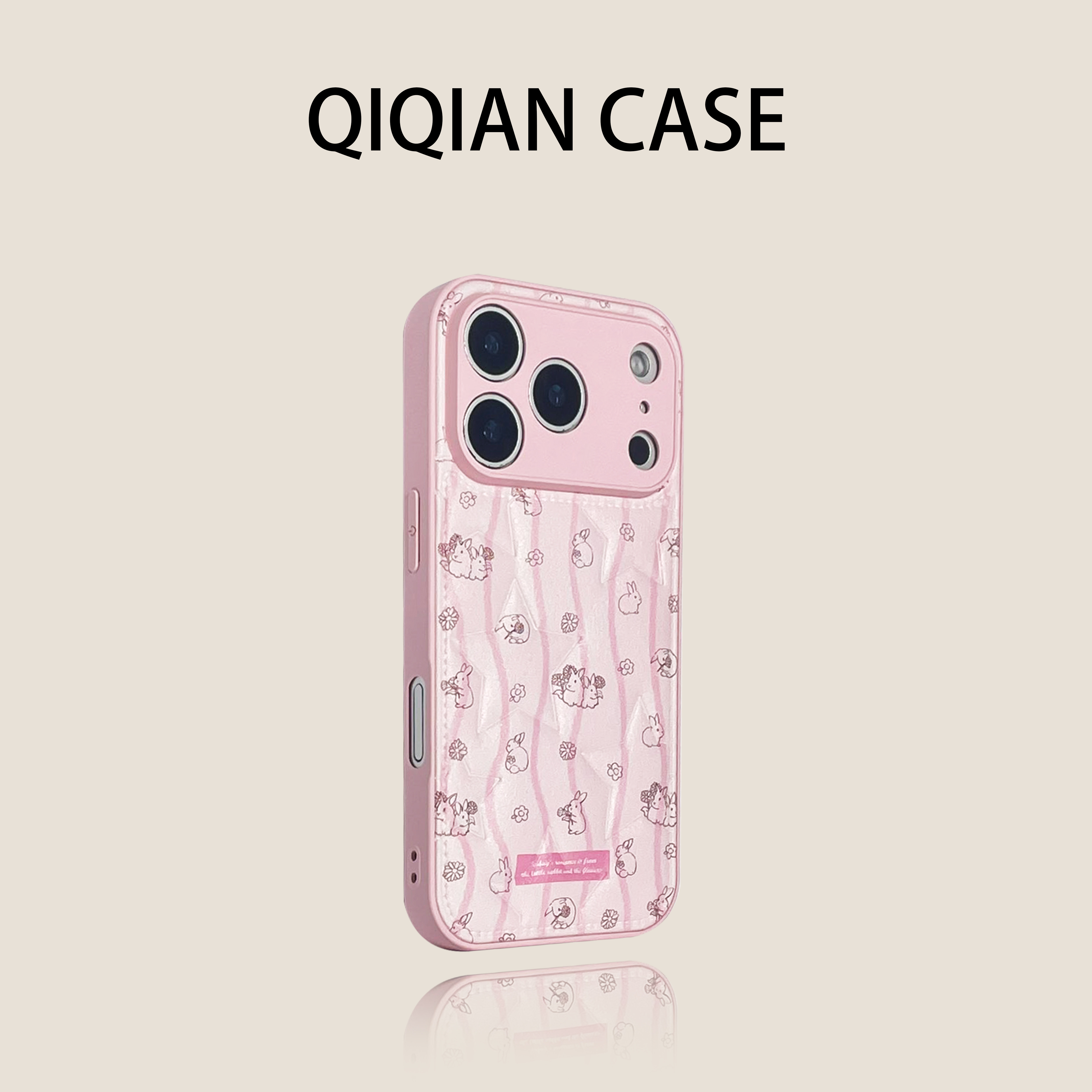 启乾 可爱肤感直边皮纹鼓包粉波浪纹线条小兔iPhone17/16手机壳适用苹果15/14promax皮质硬壳13卡通趣味ins风