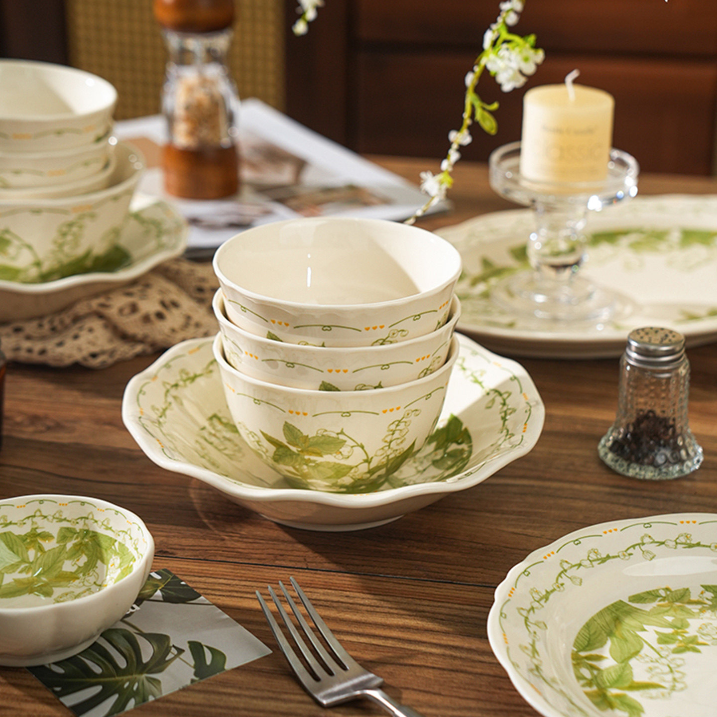 陶瓷家用盘碗5个菜盘1汤碗圆盘子大汤碗水果盘饭盘碗碟子可微波炉