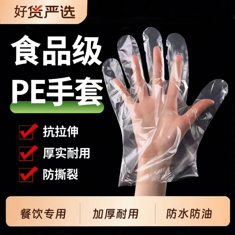 一次性手套加厚款透明薄膜手套PE食品级烘焙餐饮外卖家务手膜批发