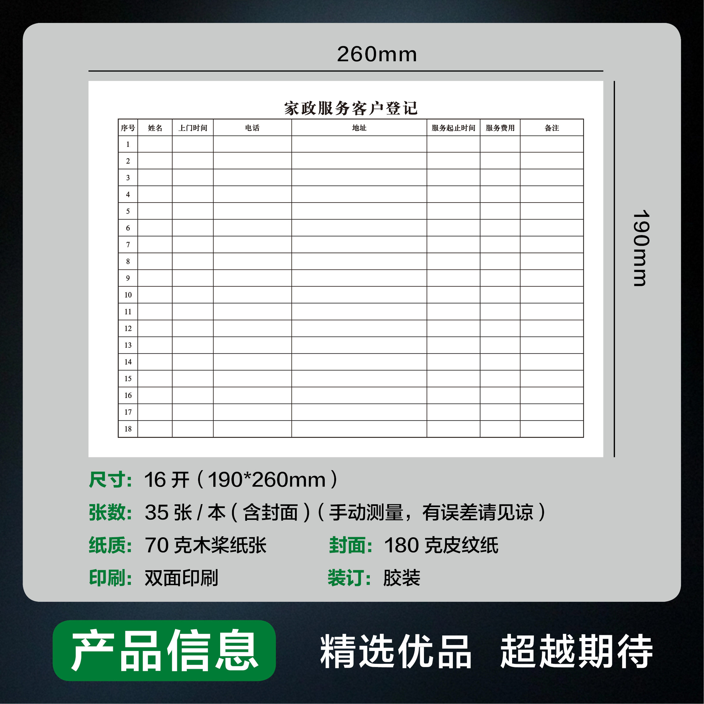 家政服务登记本保洁公司客户信息记录本家政清洁服务登记表家政业