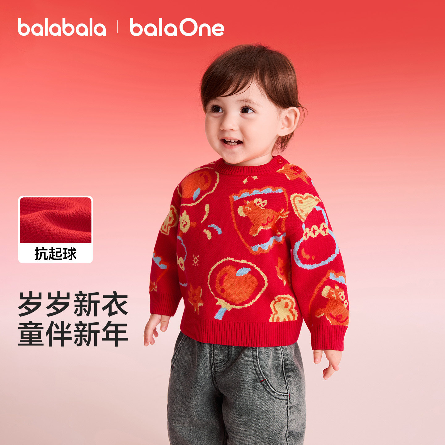 巴拉巴拉童装宝宝毛衣儿童2025新款秋冬装男童女童红色上衣拜年服