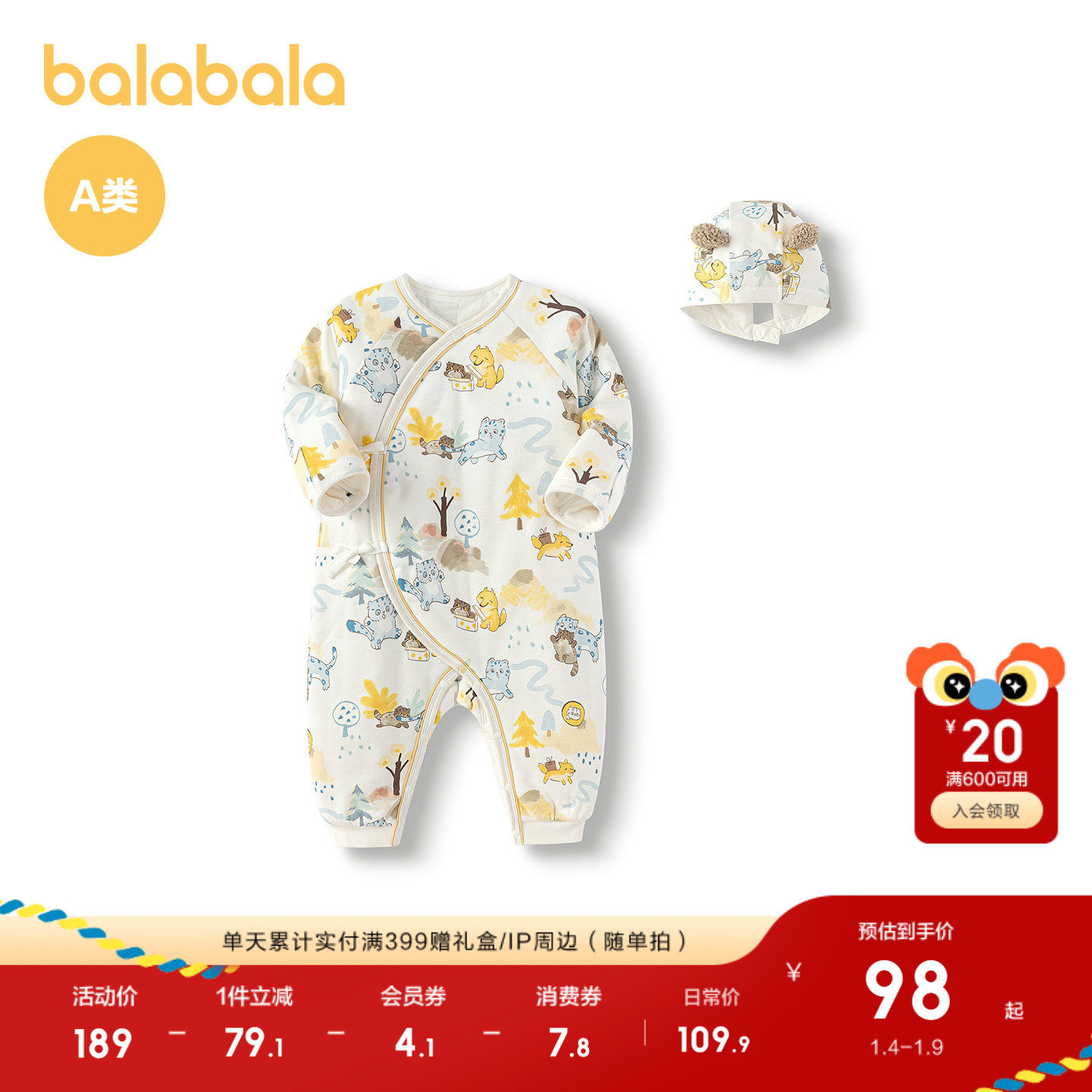 巴拉巴拉童装冬装新生婴儿连体衣男女宝宝衣服哈衣夹棉保暖可爱萌