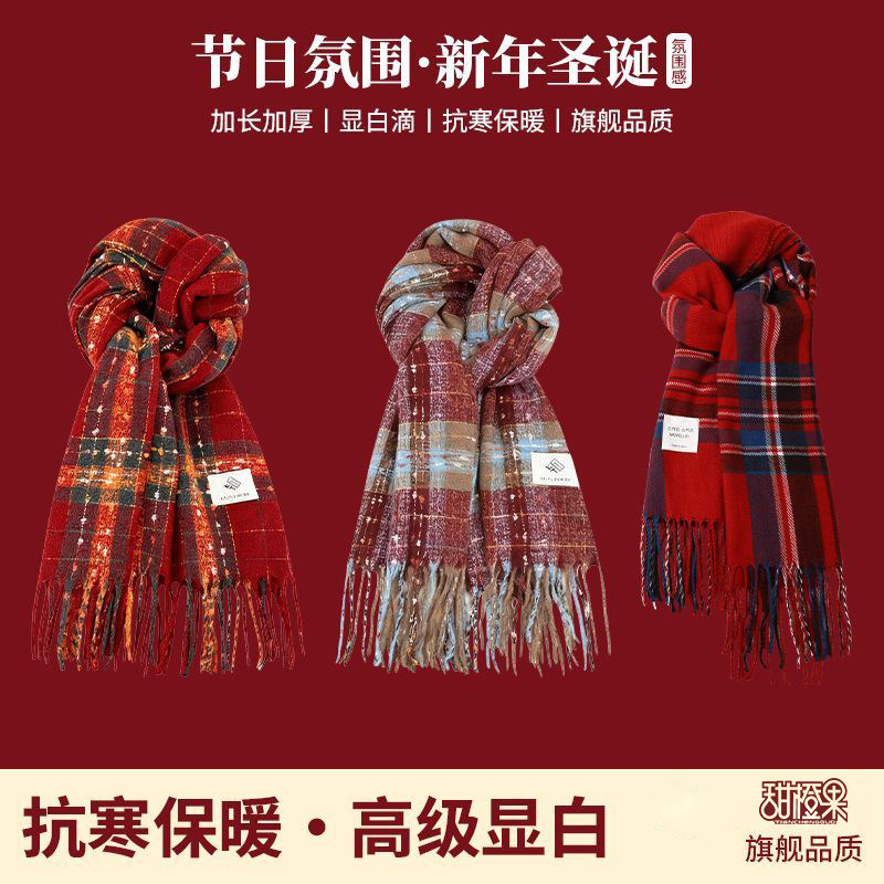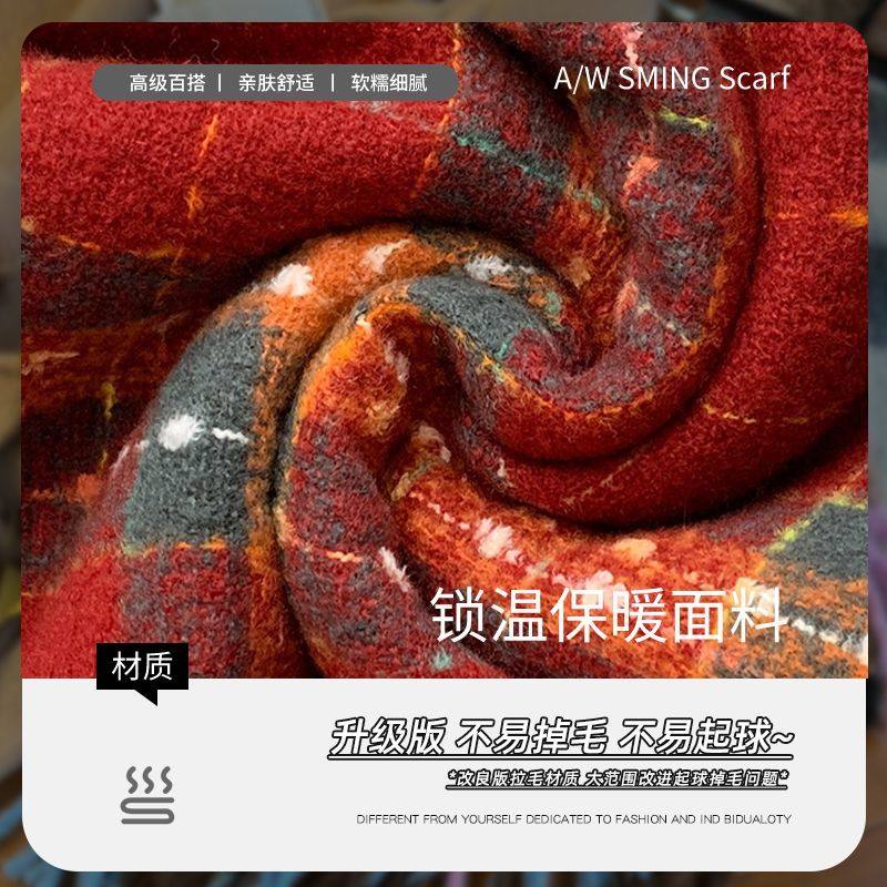 红色围巾女秋冬季高颜值护肩围脖保暖护颈韩系氛围感百搭格子围巾