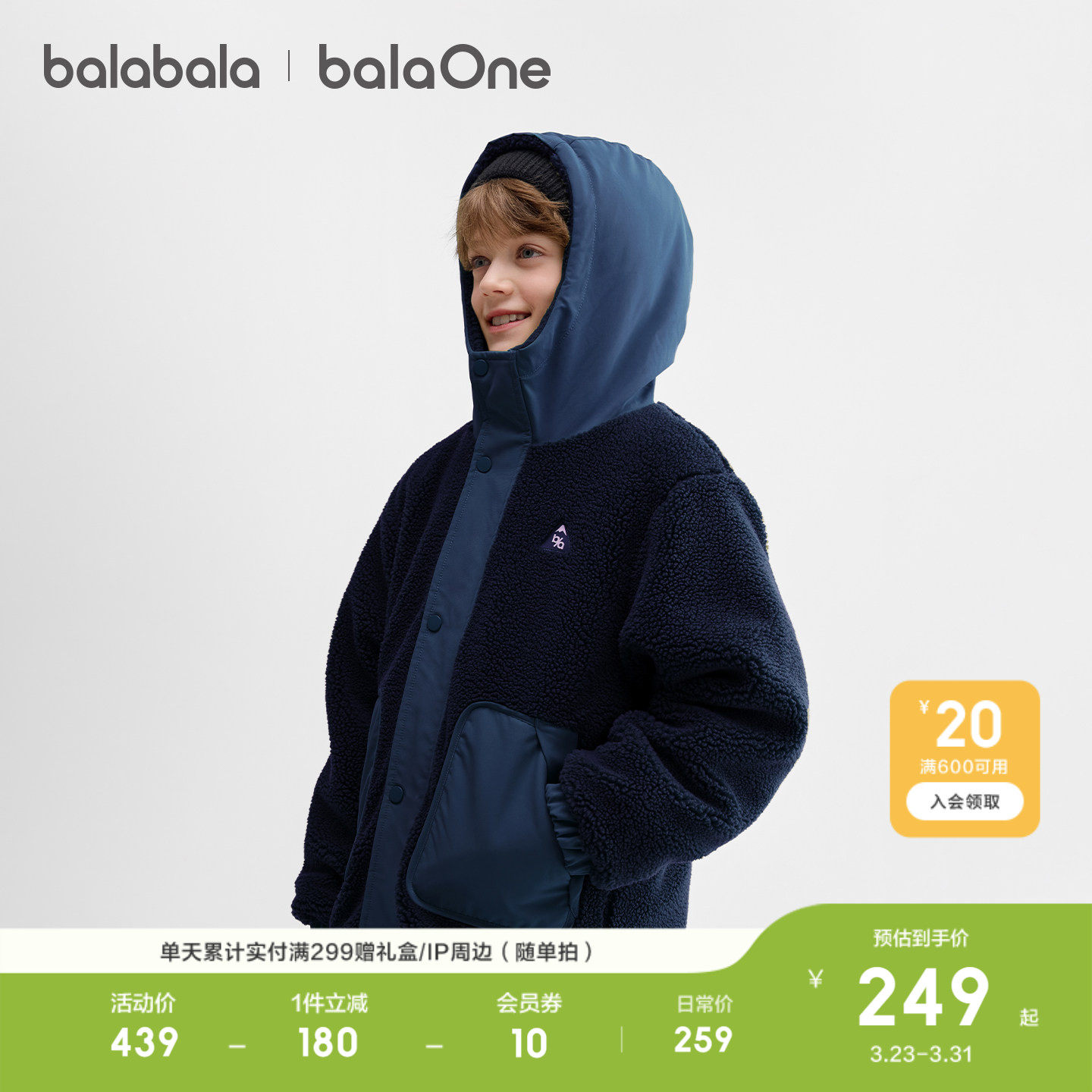 巴拉巴拉儿童棉服女童棉袄男童羊羔绒外套新款童装衣服秋冬保暖潮