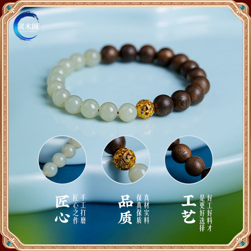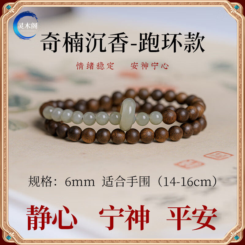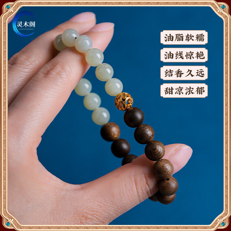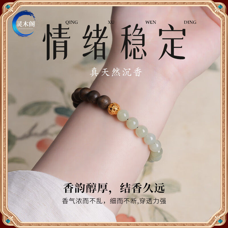 天然奇楠沉香手串女款和田玉转运珠木制玉石国风手链半山半水