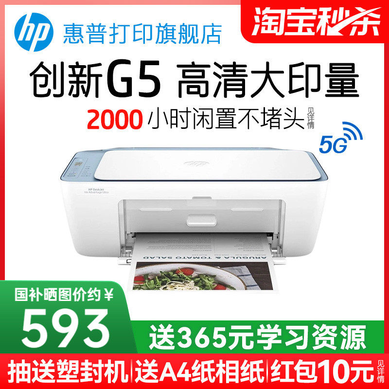 惠普5138彩色家用小型打印机学生作业迷你家庭复印扫描喷墨一体机可连接手机无线WiFi远程照片5135办公专用A4