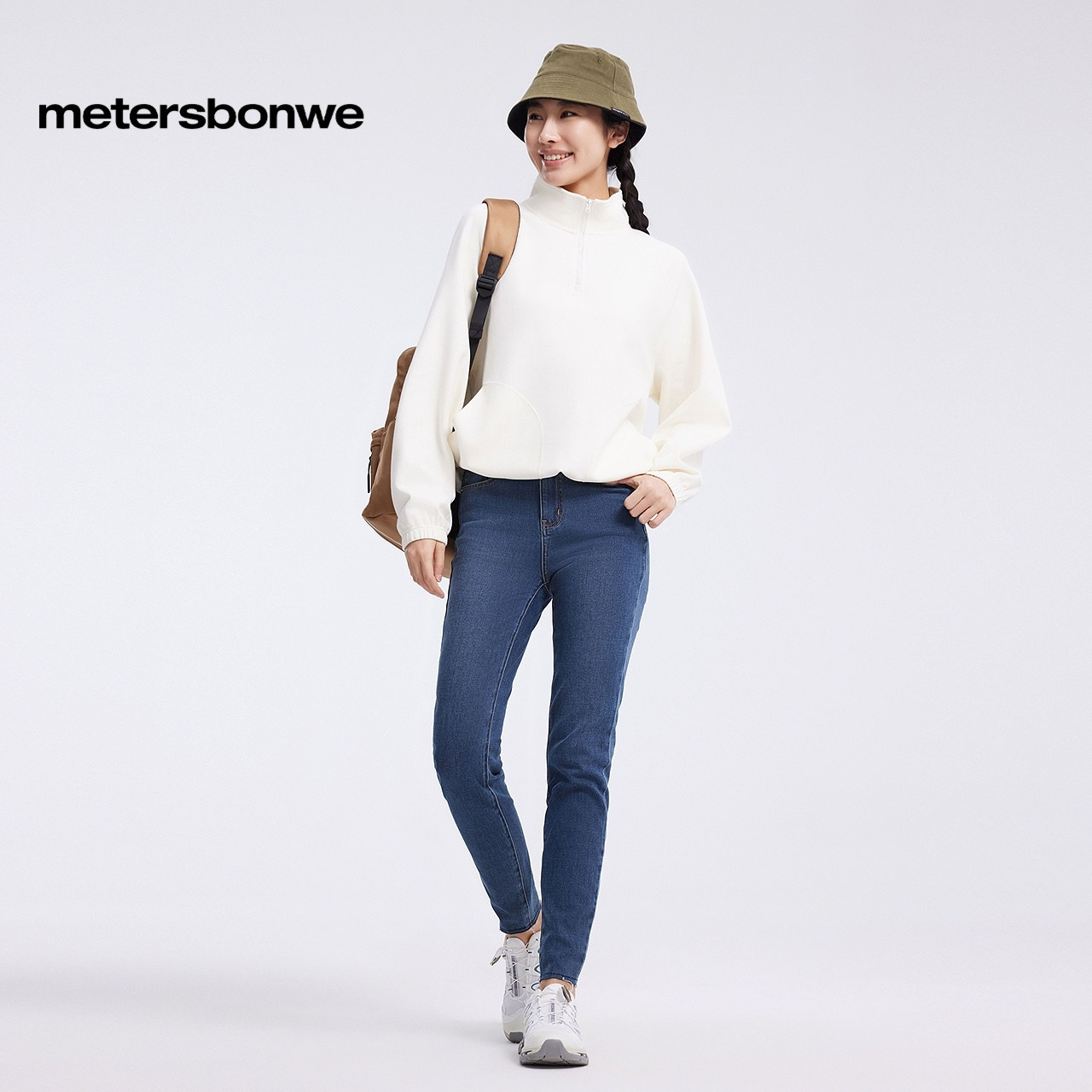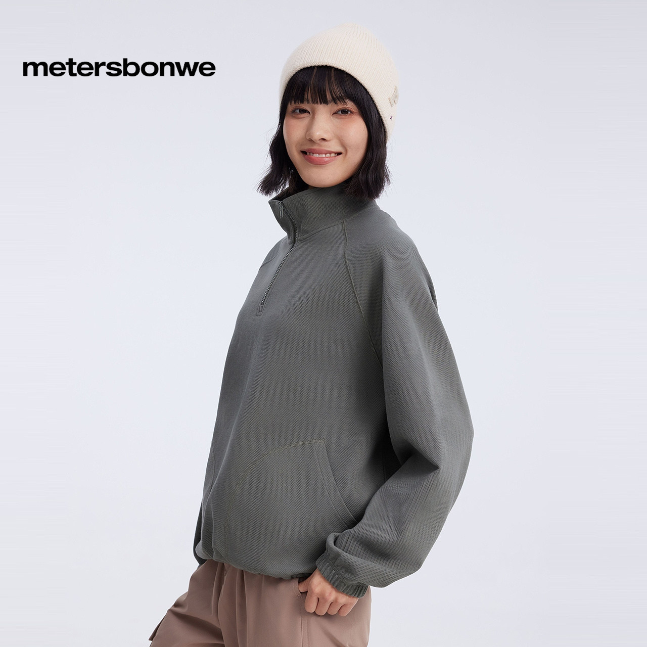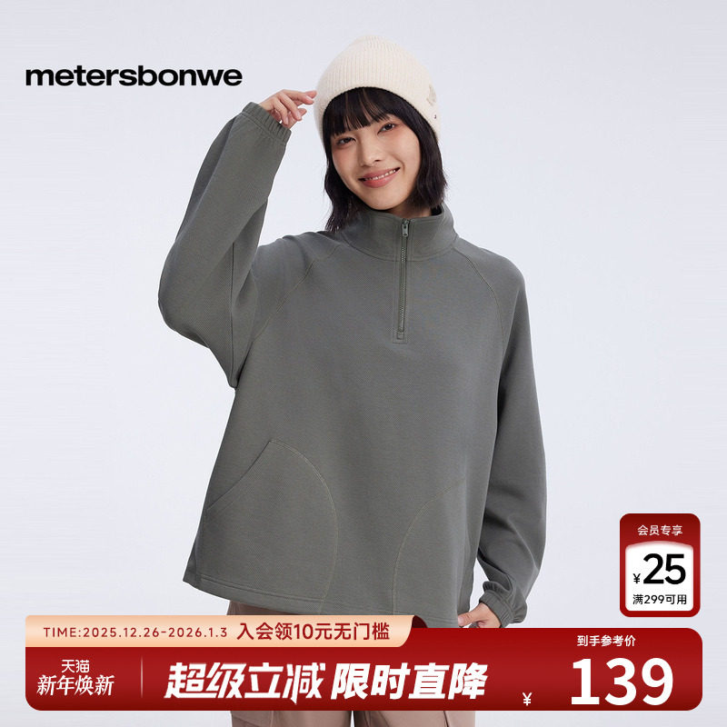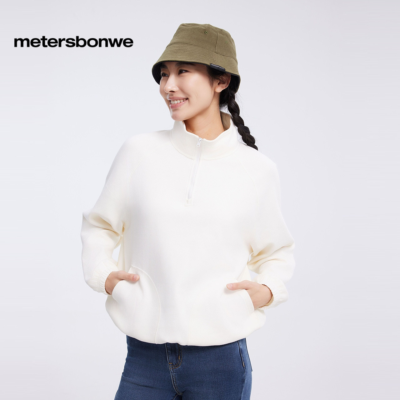 美特斯邦威卫衣女2025春季新款立领拉链插袋卫衣纯色提花亲肤上衣
