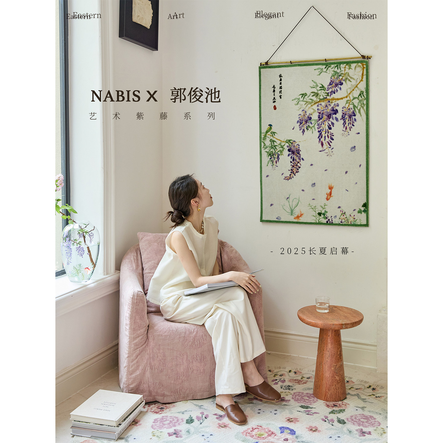 蜡笔派郭俊池联名|东方夏日|亲笔签名紫藤垂夏挂毯画客厅装饰画