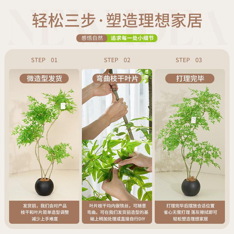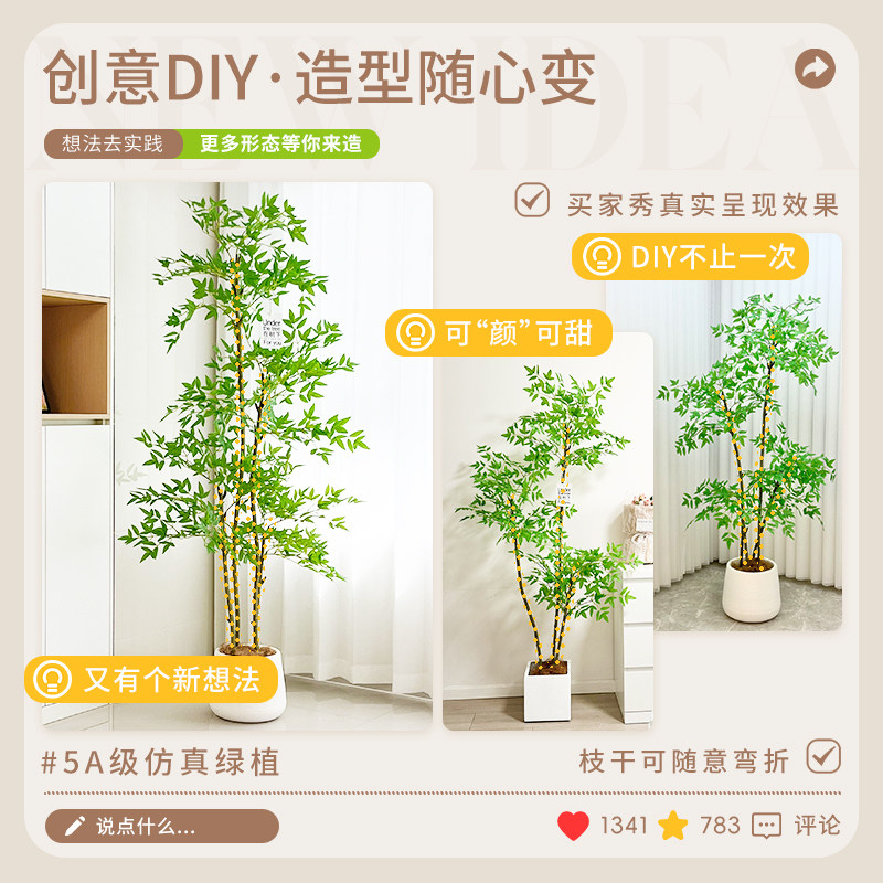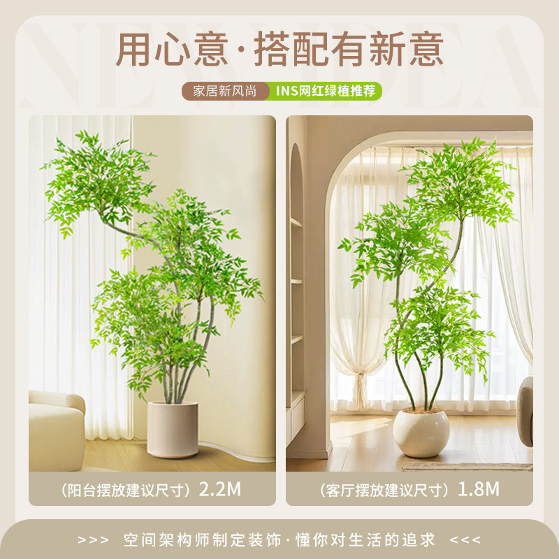 仿真绿植室内南天竹客厅植物装饰大型盆栽落地仿真花电视柜新家