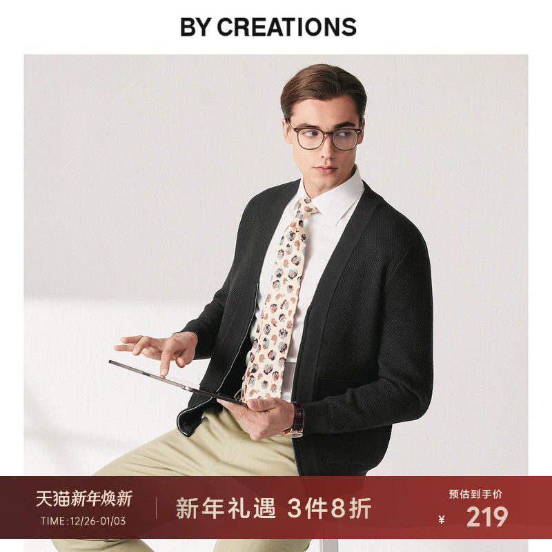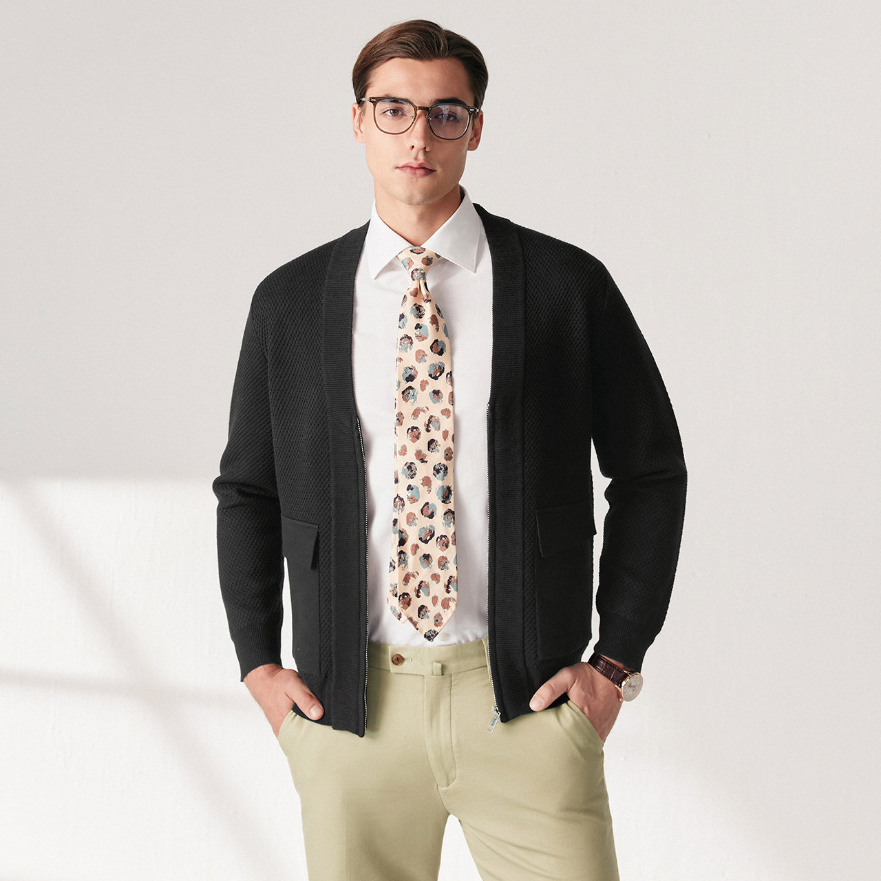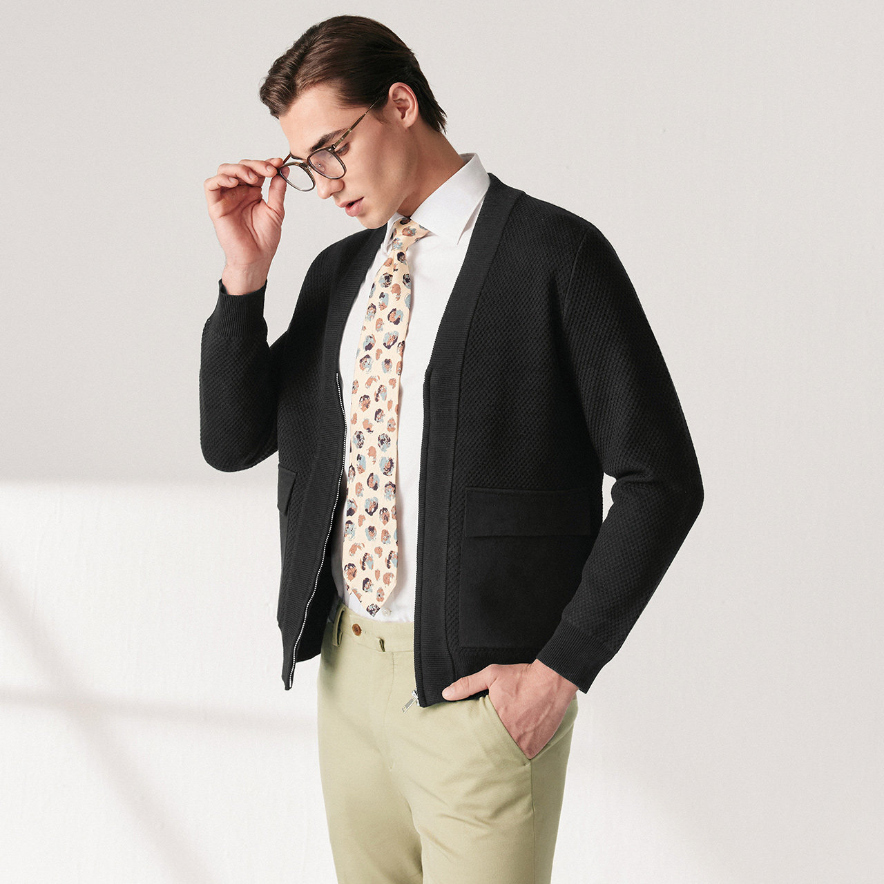 【可机洗】柏品易打理绵羊毛开衫男士冬新品商务休闲针织夹克外套