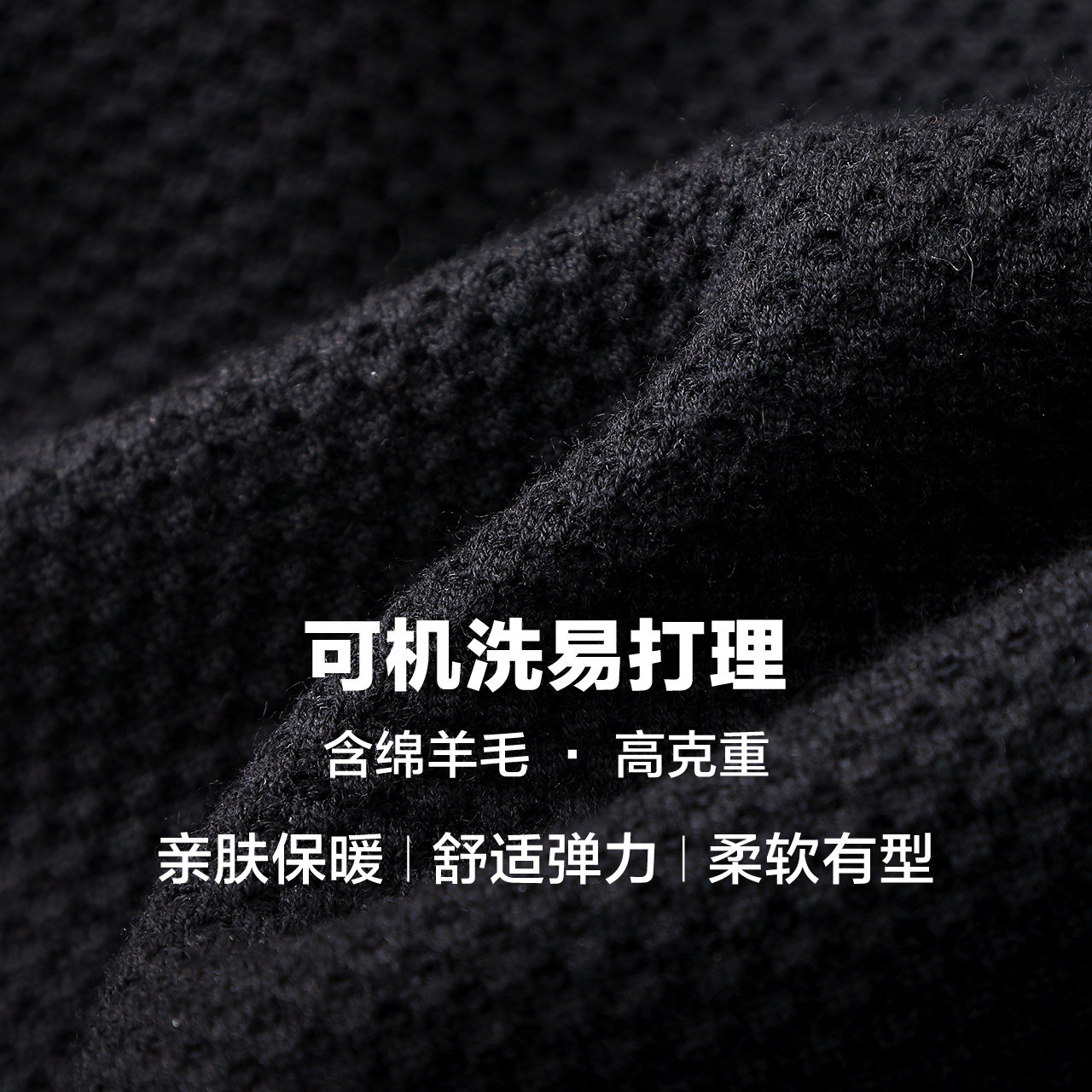 森马毛衫男冬季含羊绒针织衫发热抑菌2025新款基础圆领黑色打底衫