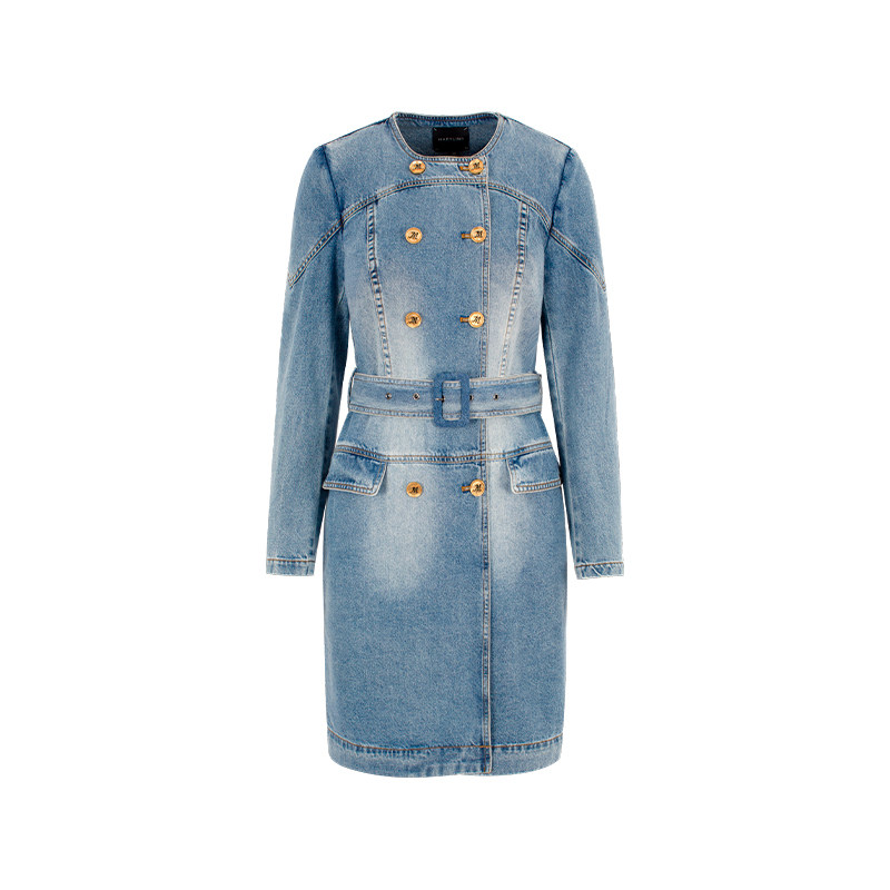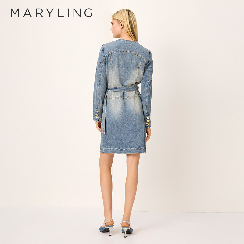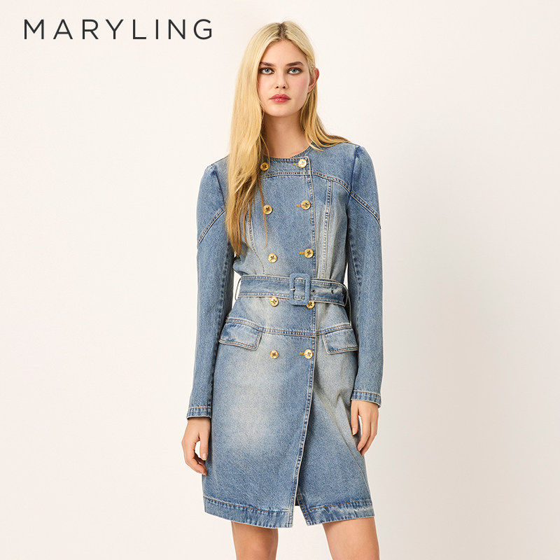 MARYLING玛俪琳2025春季新品双排扣圆领水洗牛仔外套A1FBW17060
