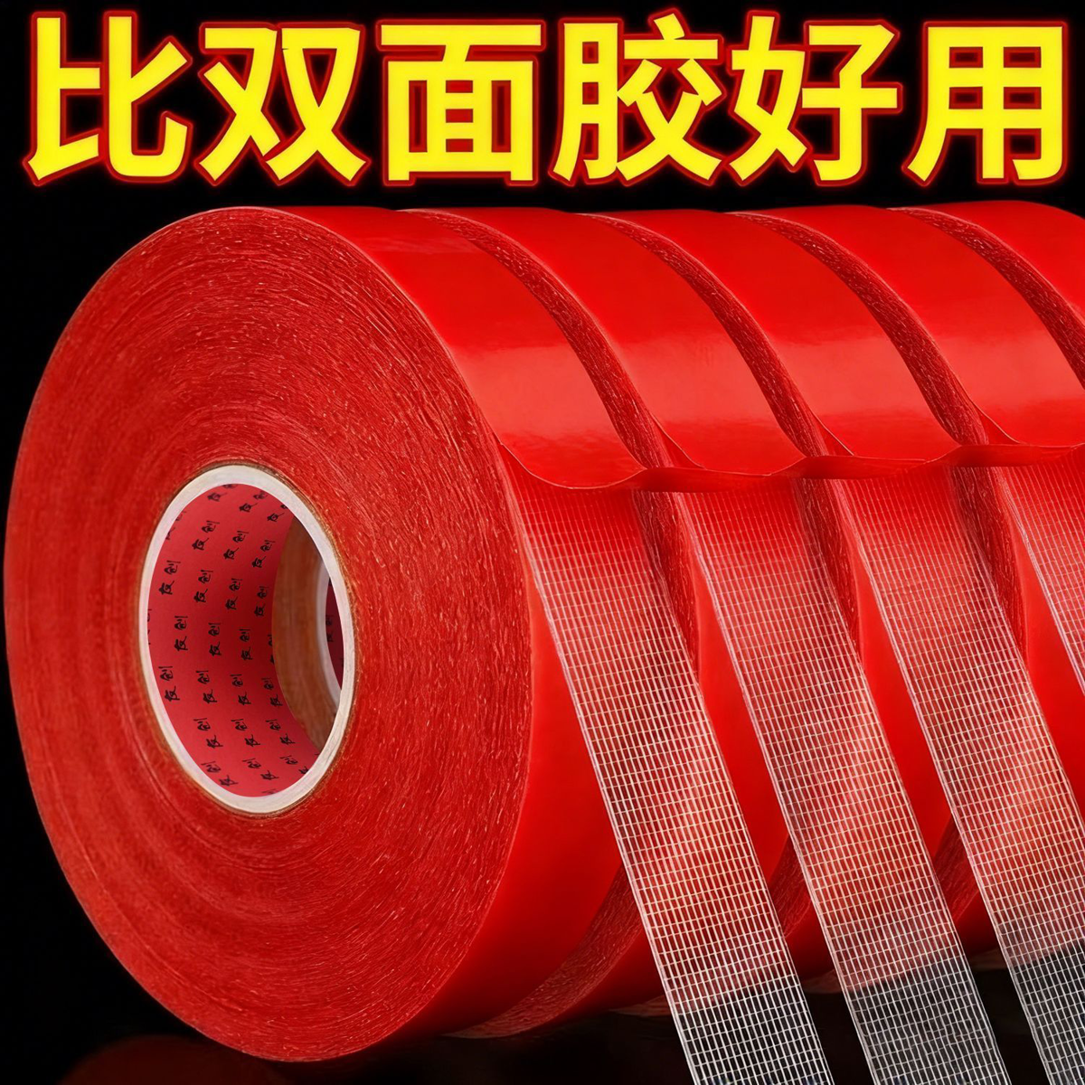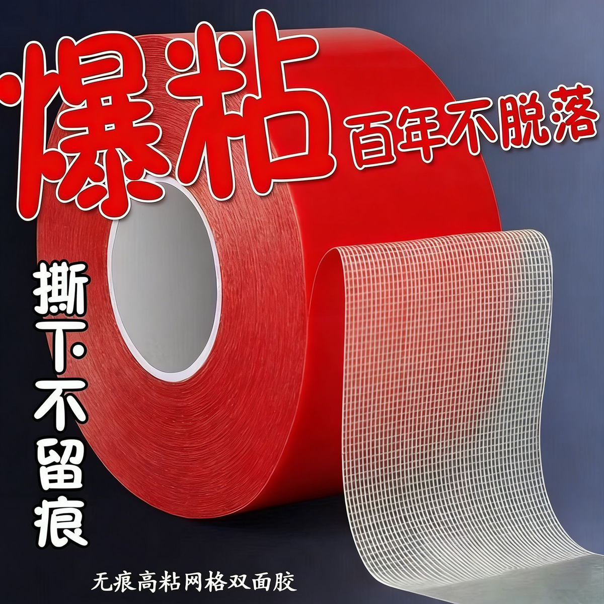 高粘度红色网格布基双面胶带贴春联撕下不留痕婚车年画网格胶布
